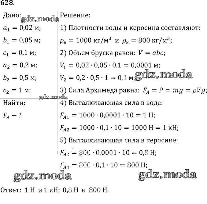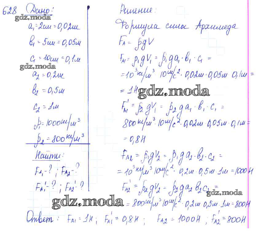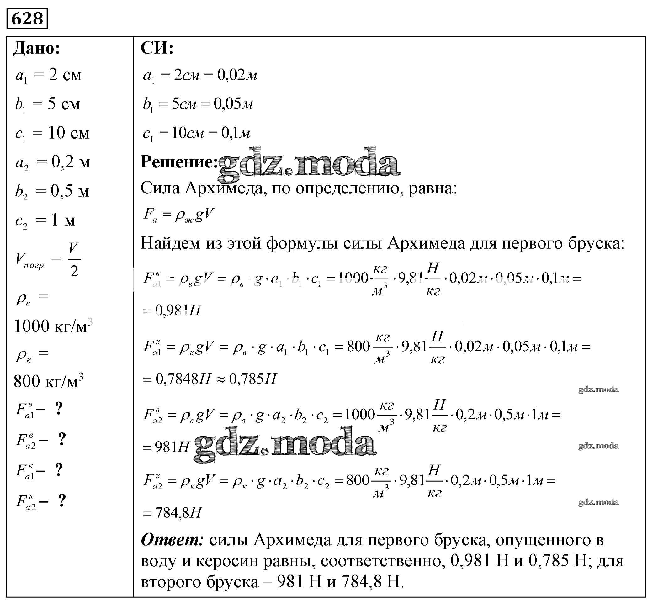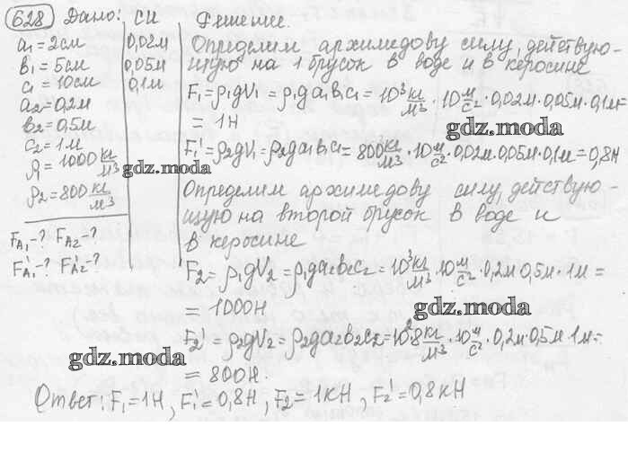 ОТВЕТ на задание № 628 Сборник задач по Физике 7-9 класс Лукашик