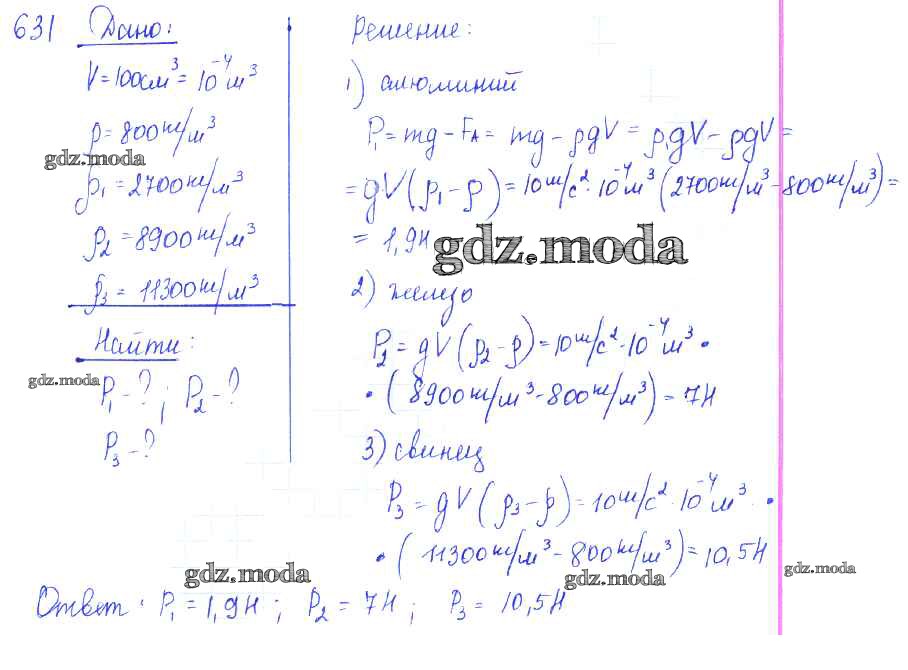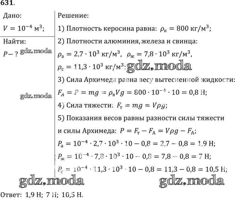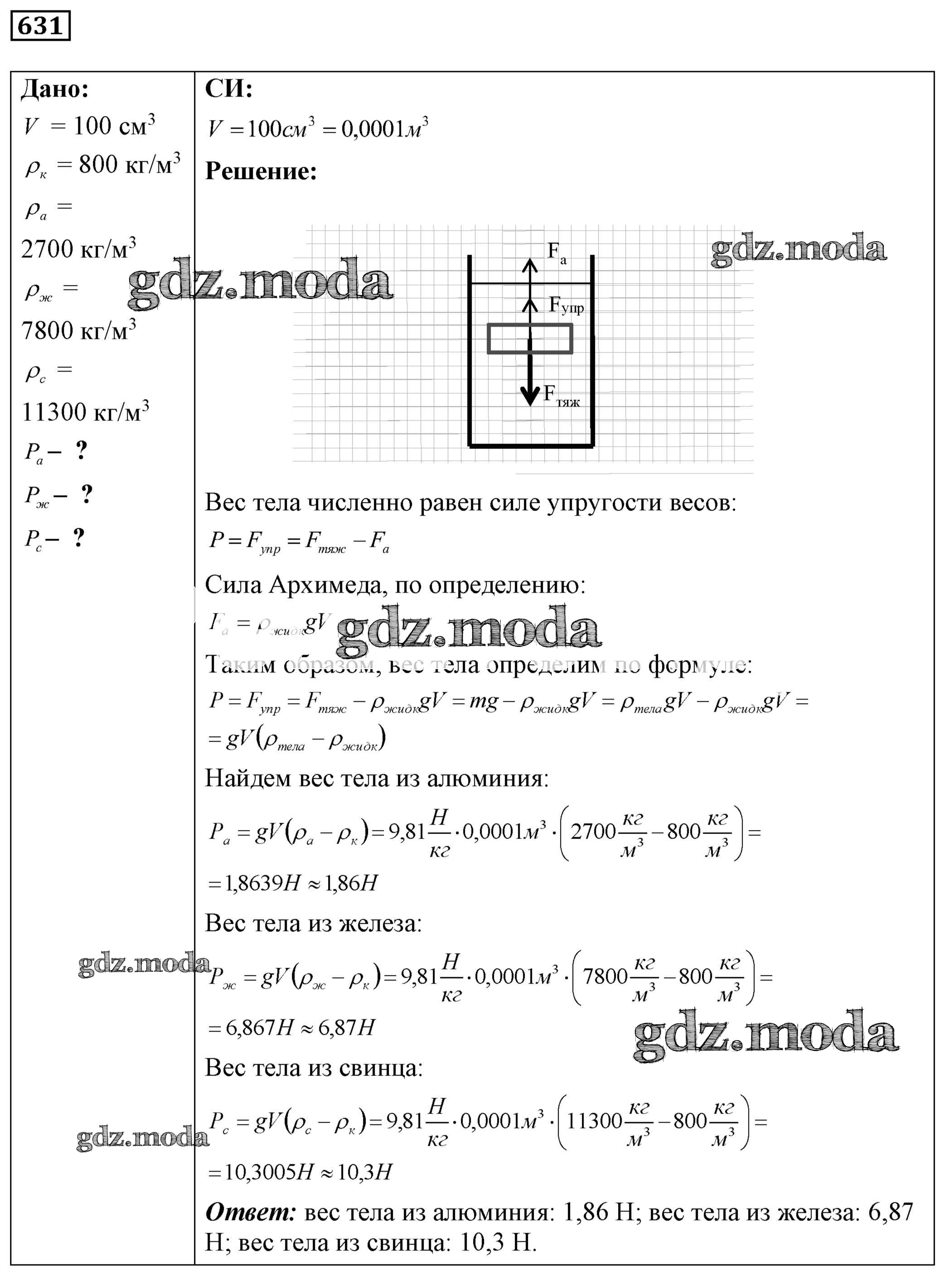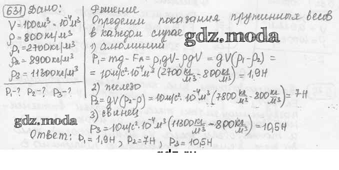 ОТВЕТ на задание № 631 Сборник задач по Физике 7-9 класс Лукашик