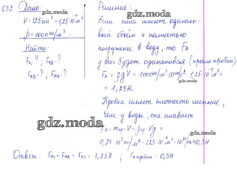 ОТВЕТ на задание № 632 Сборник задач по Физике 7-9 класс Лукашик