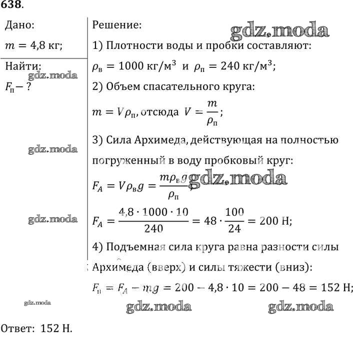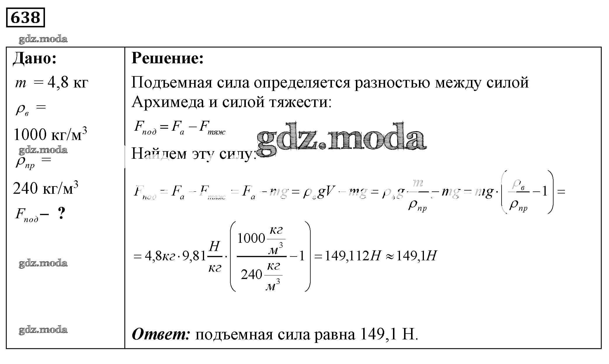 ОТВЕТ на задание № 638 Сборник задач по Физике 7-9 класс Лукашик