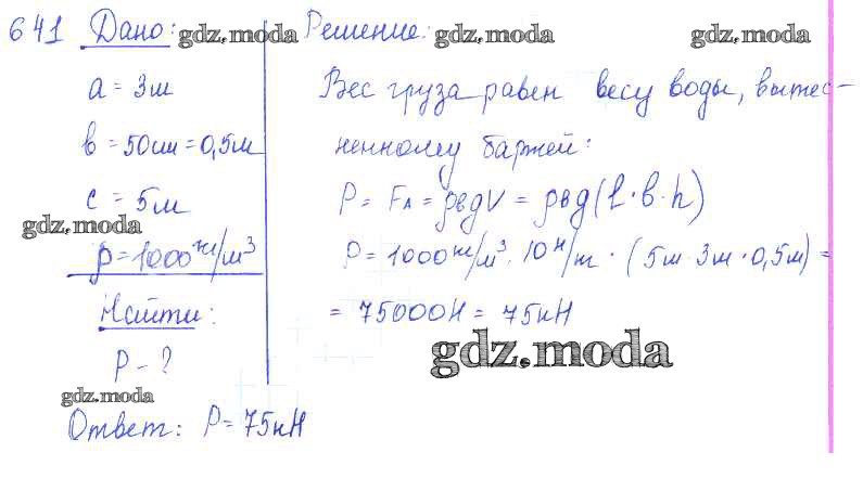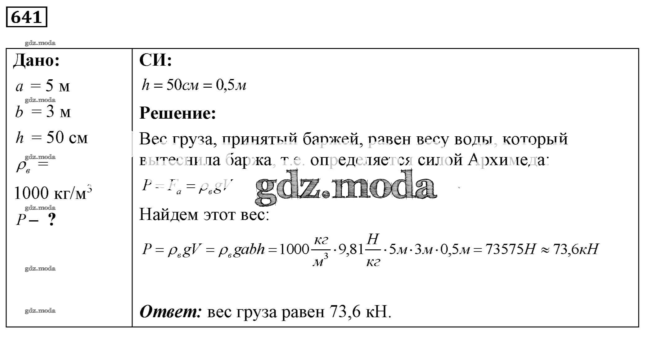 ОТВЕТ на задание № 641 Сборник задач по Физике 7-9 класс Лукашик