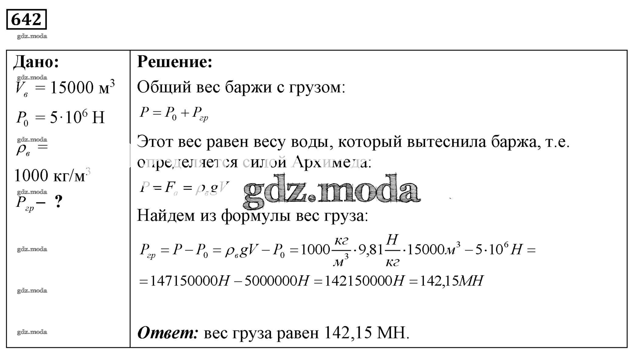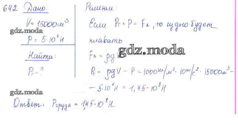 ОТВЕТ на задание № 642 Сборник задач по Физике 7-9 класс Лукашик