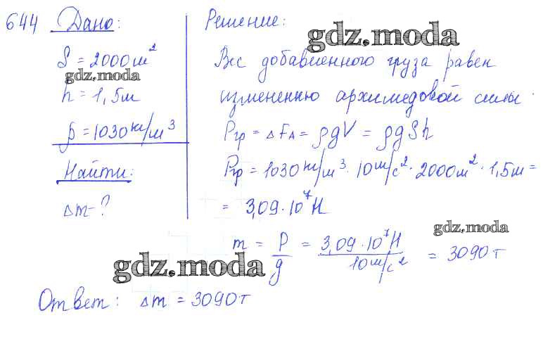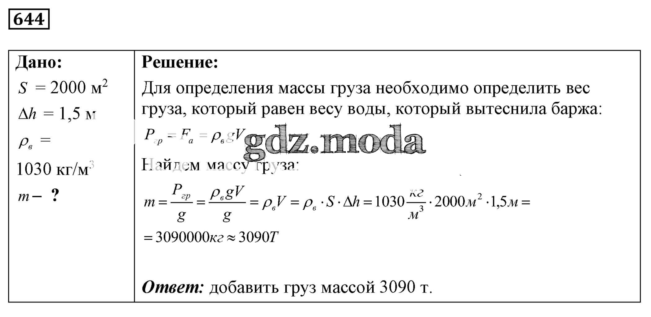 ОТВЕТ на задание № 644 Сборник задач по Физике 7-9 класс Лукашик