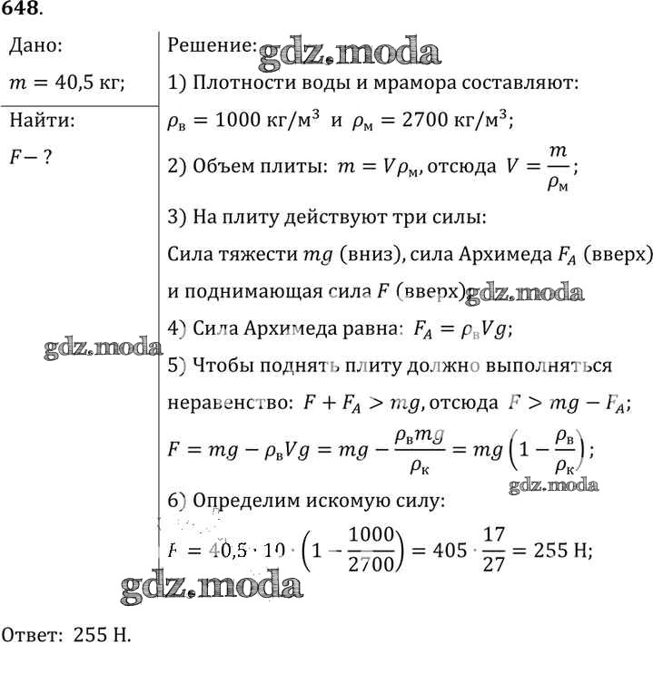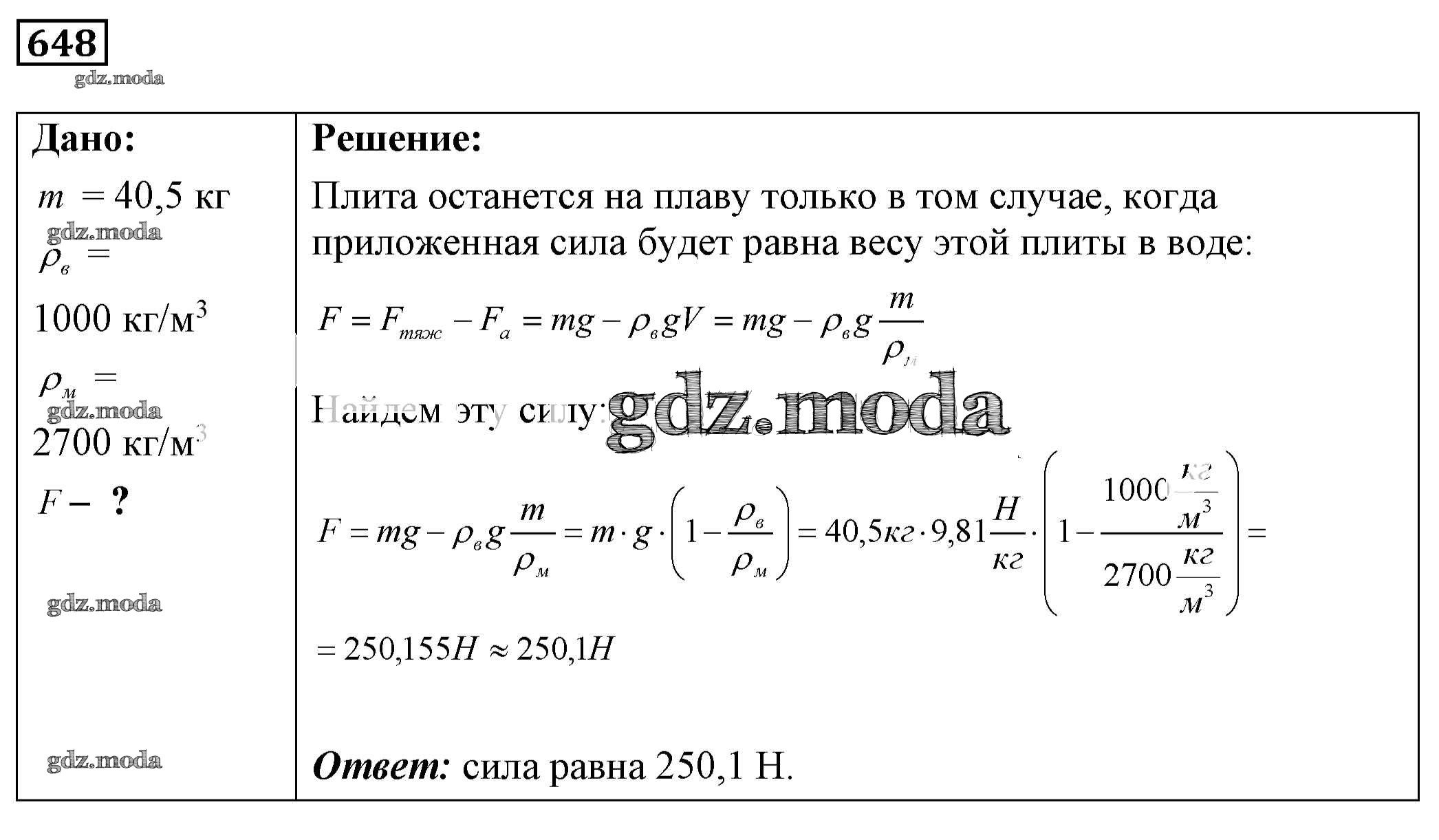 ОТВЕТ на задание № 648 Сборник задач по Физике 7-9 класс Лукашик