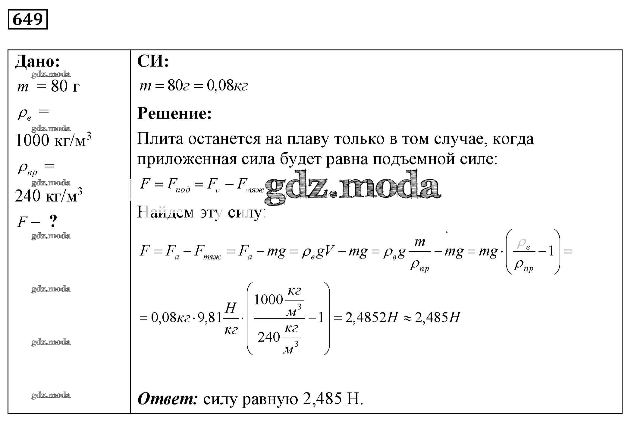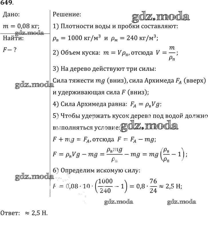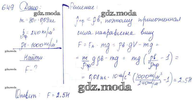 ОТВЕТ на задание № 649 Сборник задач по Физике 7-9 класс Лукашик