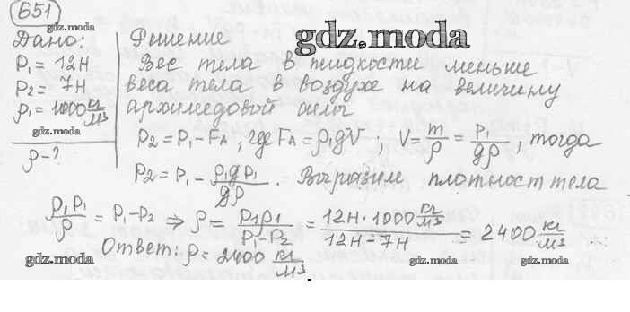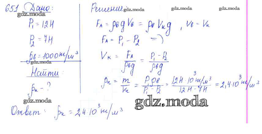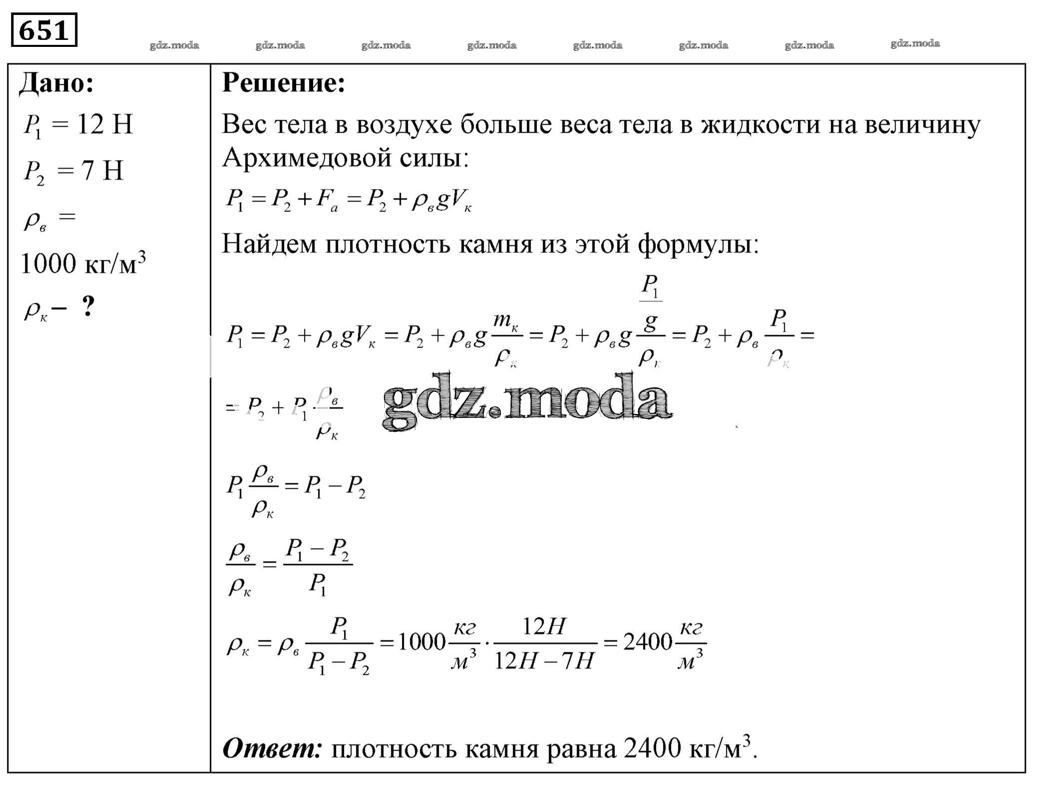 ОТВЕТ на задание № 651 Сборник задач по Физике 7-9 класс Лукашик