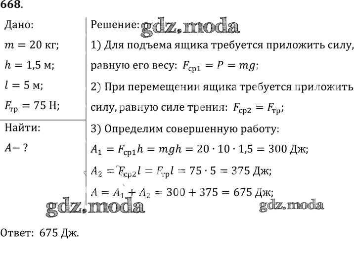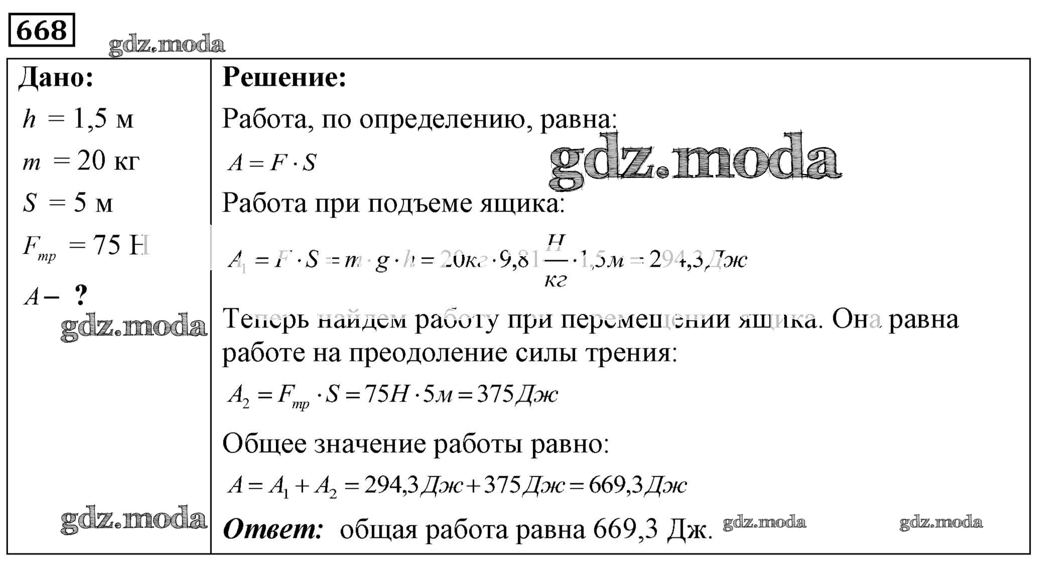 ОТВЕТ на задание № 668 Сборник задач по Физике 7-9 класс Лукашик