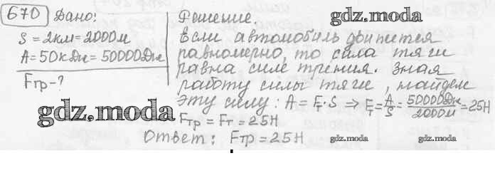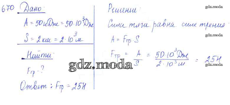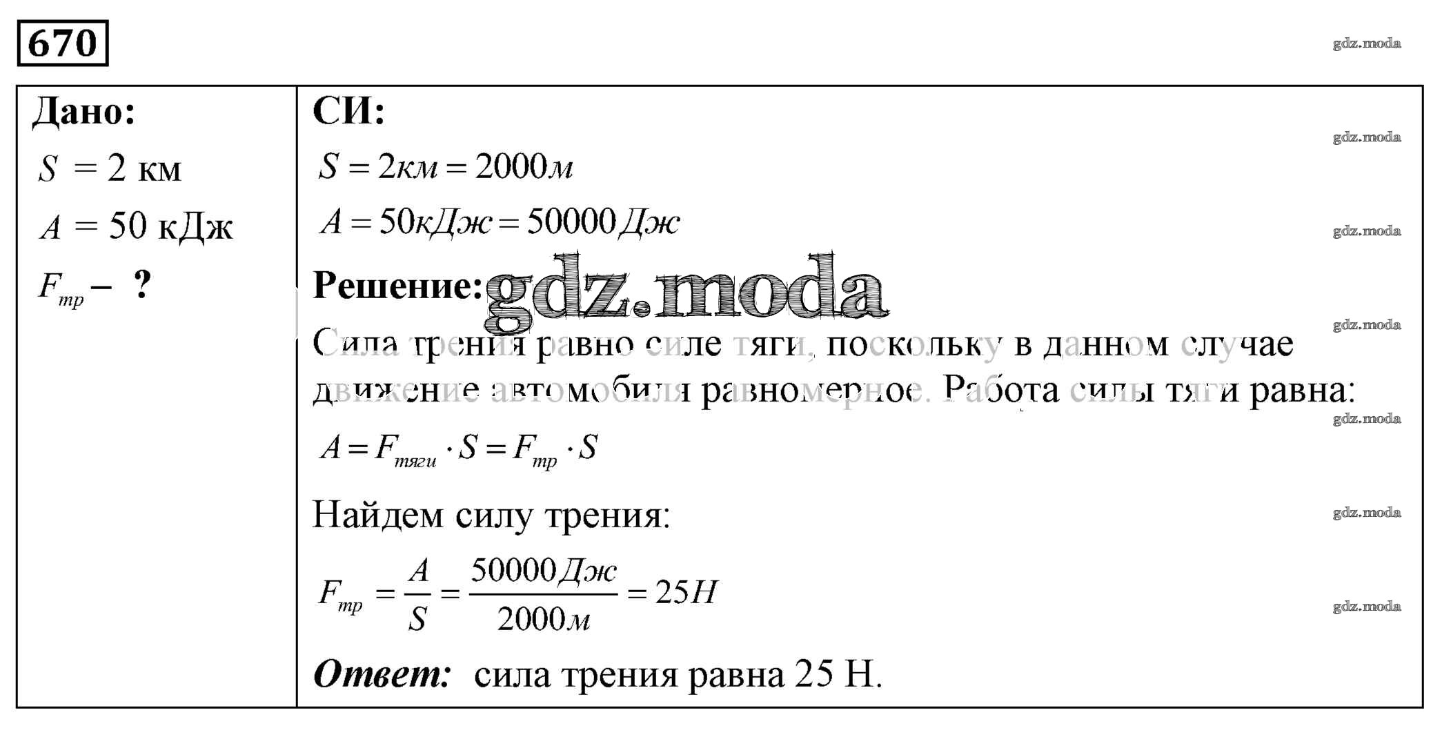 ОТВЕТ на задание № 670 Сборник задач по Физике 7-9 класс Лукашик