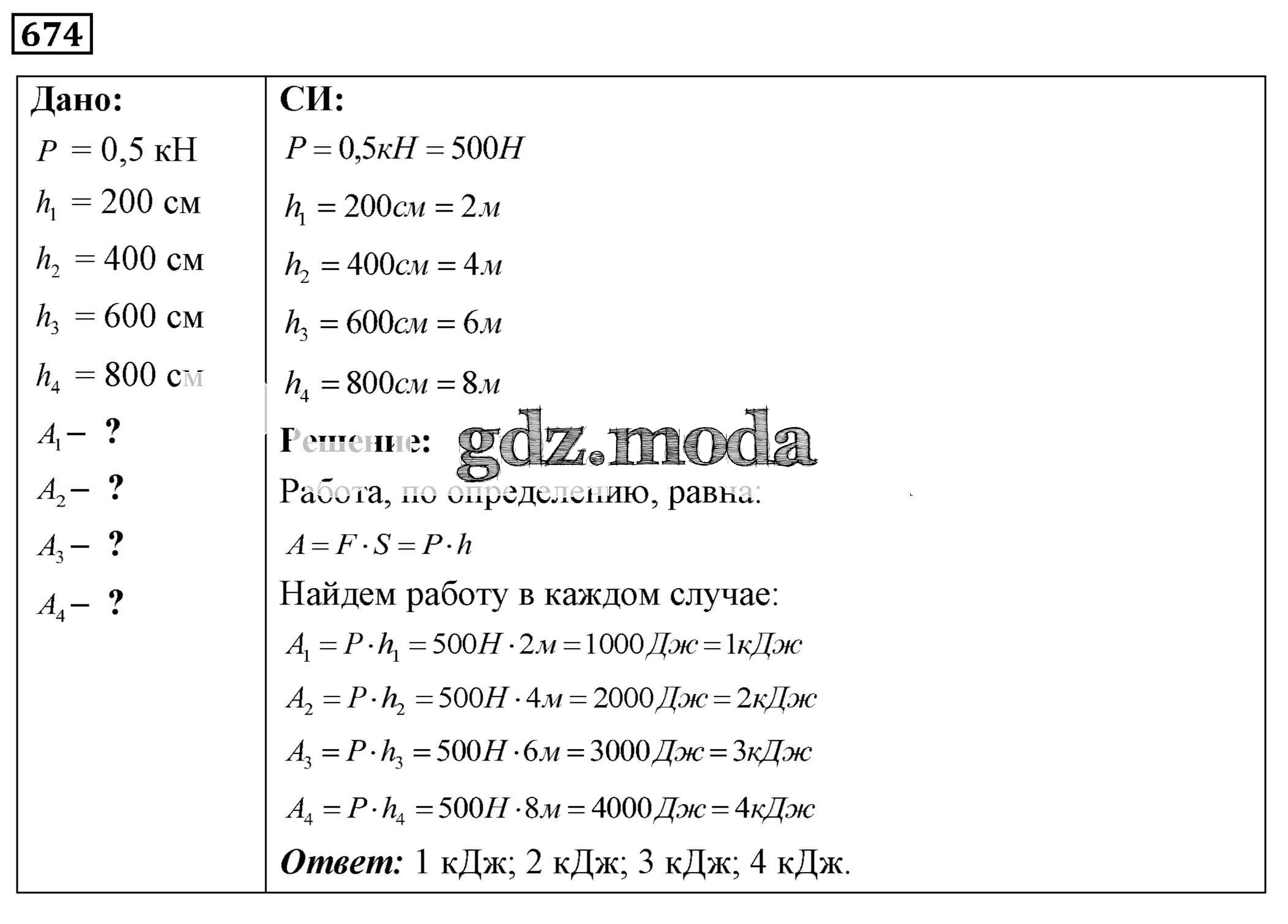 ОТВЕТ на задание № 674 Сборник задач по Физике 7-9 класс Лукашик