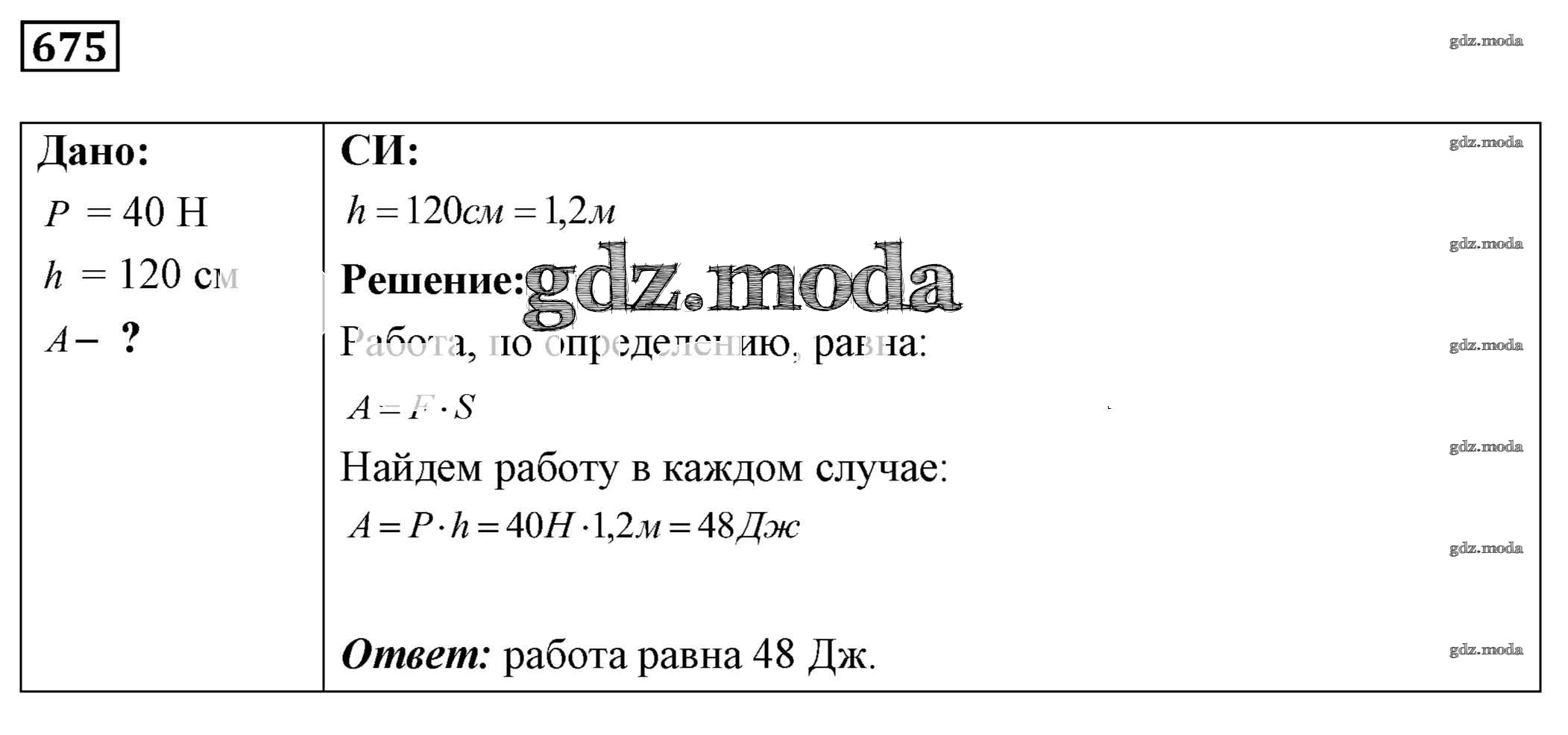 ОТВЕТ на задание № 675 Сборник задач по Физике 7-9 класс Лукашик