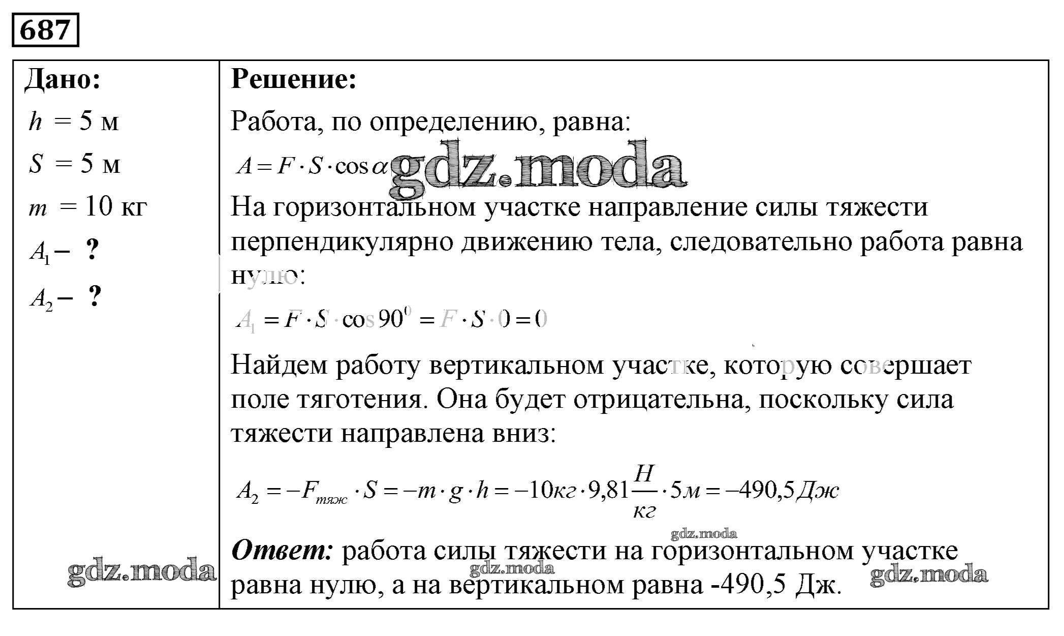 ОТВЕТ на задание № 687 Сборник задач по Физике 7-9 класс Лукашик
