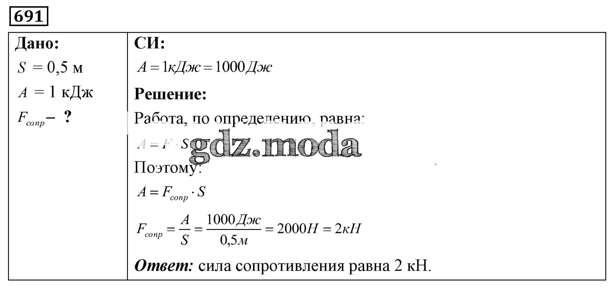 ОТВЕТ на задание № 691 Сборник задач по Физике 7-9 класс Лукашик