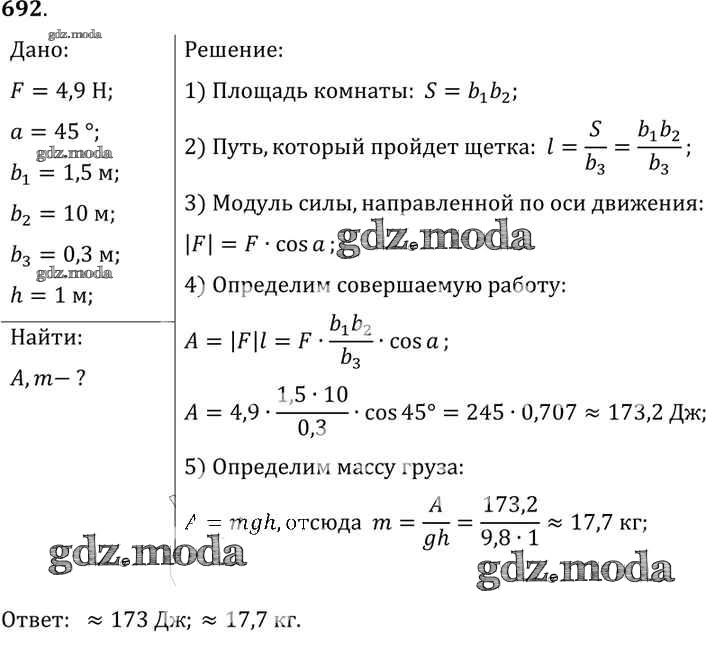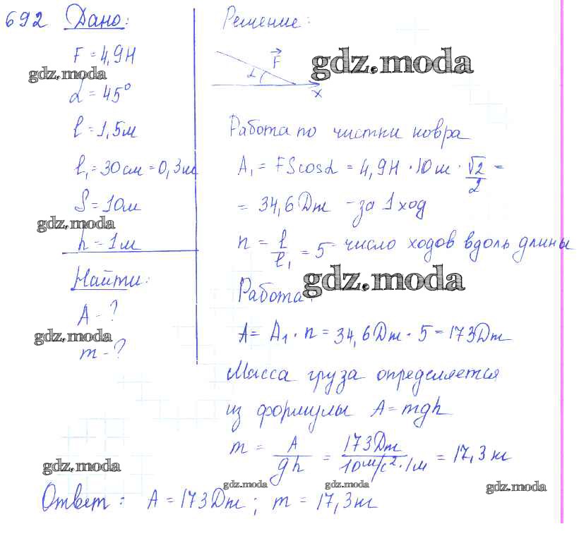 ОТВЕТ на задание № 692 Сборник задач по Физике 7-9 класс Лукашик