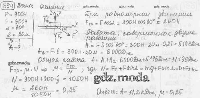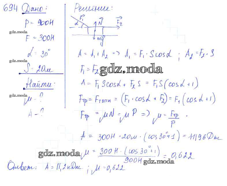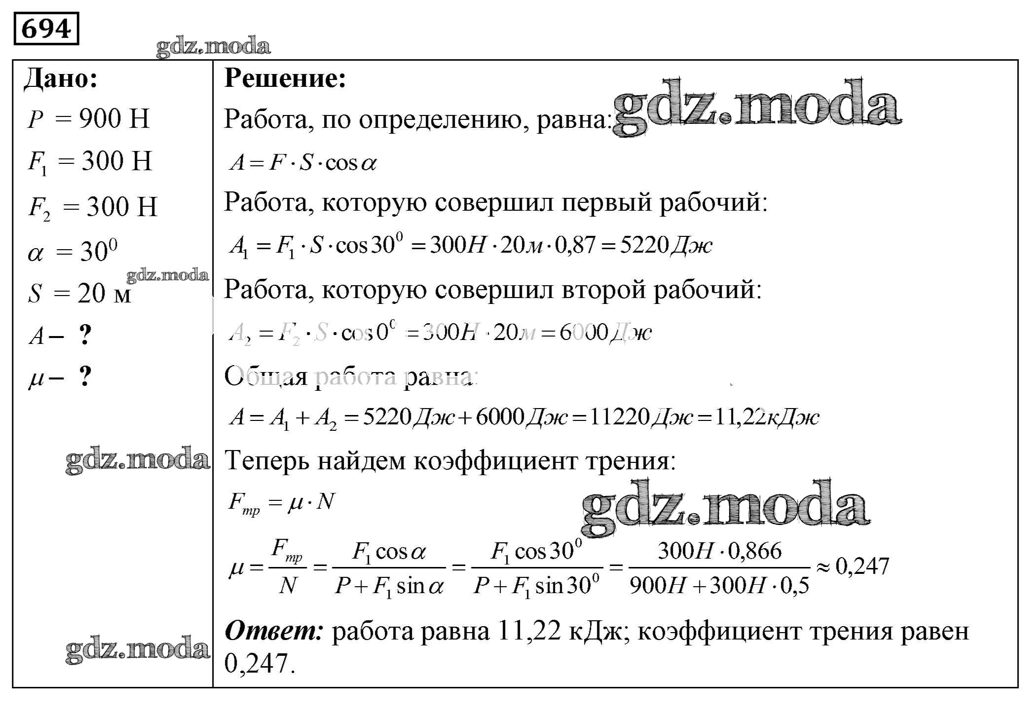 ОТВЕТ на задание № 694 Сборник задач по Физике 7-9 класс Лукашик