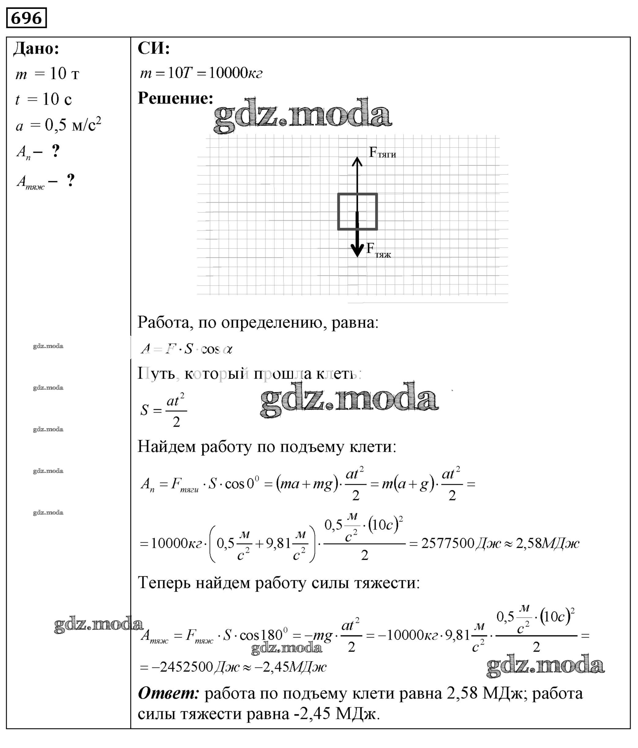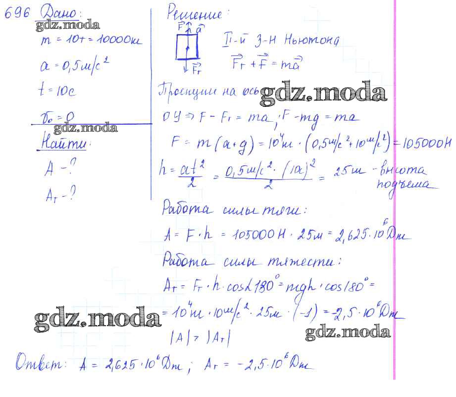 ОТВЕТ на задание № 696 Сборник задач по Физике 7-9 класс Лукашик