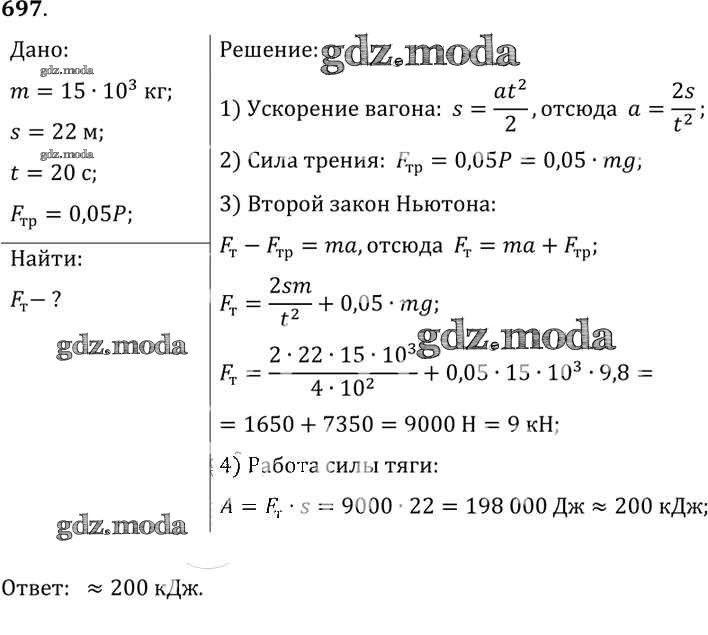 ОТВЕТ на задание № 697 Сборник задач по Физике 7-9 класс Лукашик
