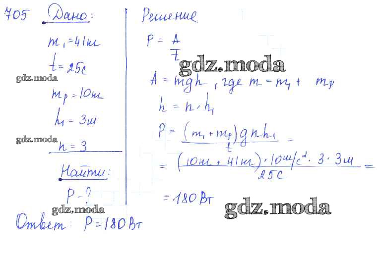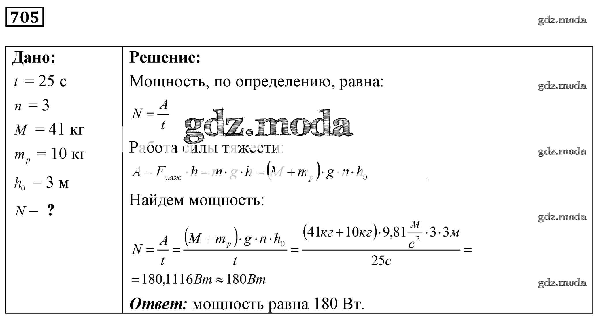 ОТВЕТ на задание № 705 Сборник задач по Физике 7-9 класс Лукашик