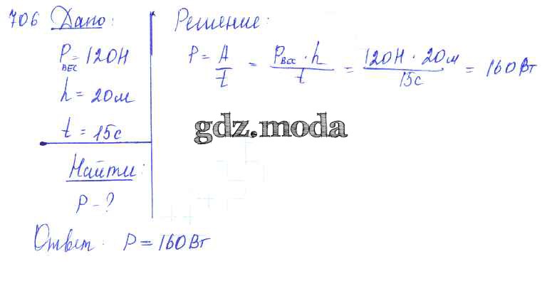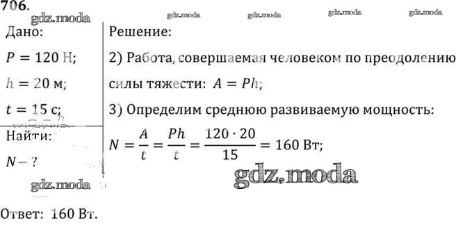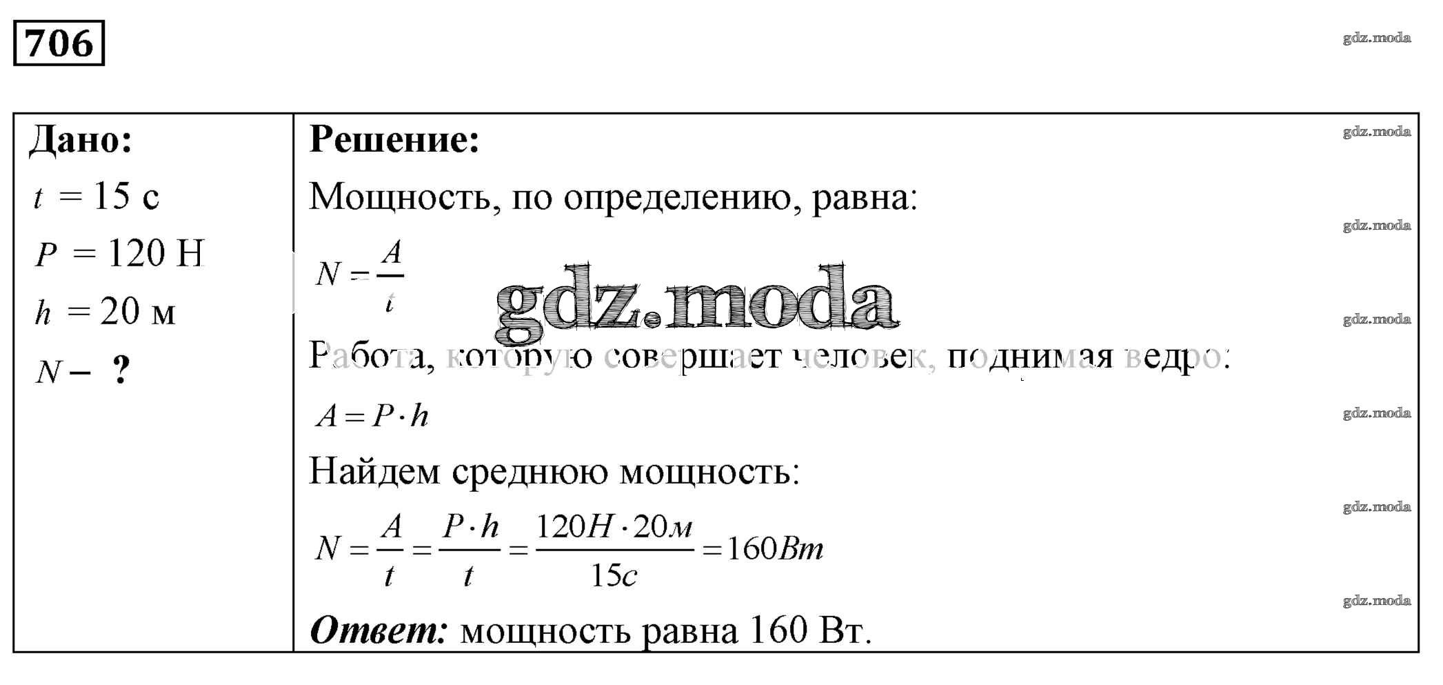 ОТВЕТ на задание № 706 Сборник задач по Физике 7-9 класс Лукашик