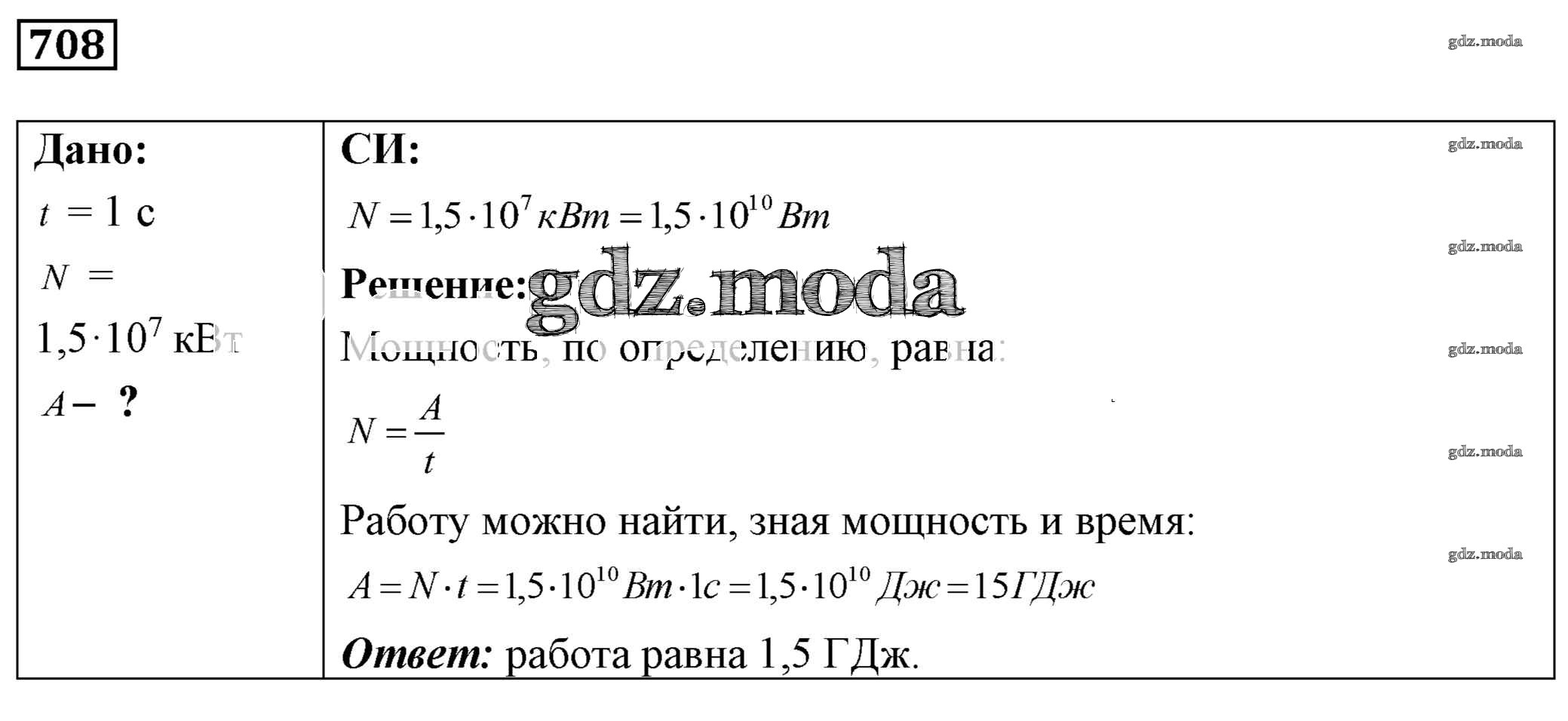 ОТВЕТ на задание № 708 Сборник задач по Физике 7-9 класс Лукашик