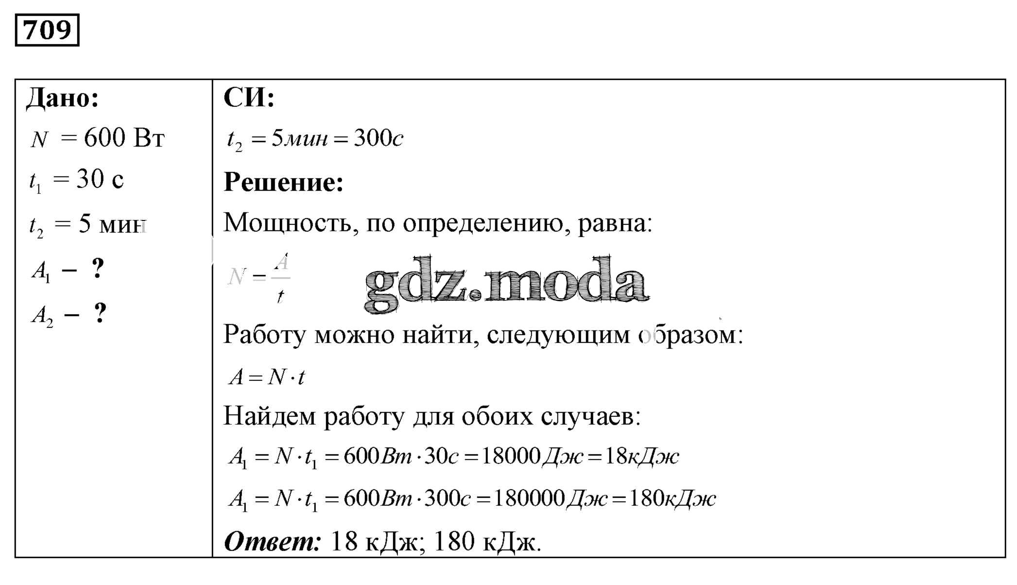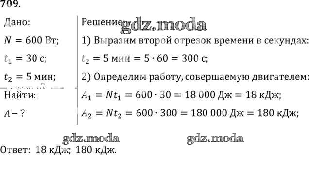 ОТВЕТ на задание № 709 Сборник задач по Физике 7-9 класс Лукашик