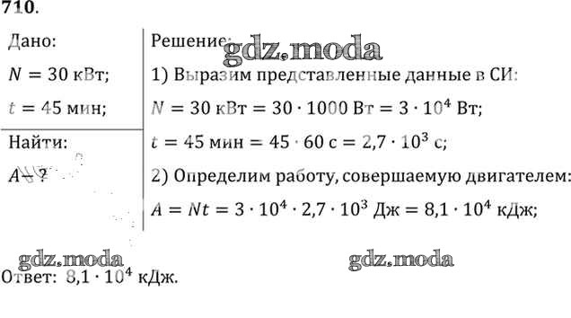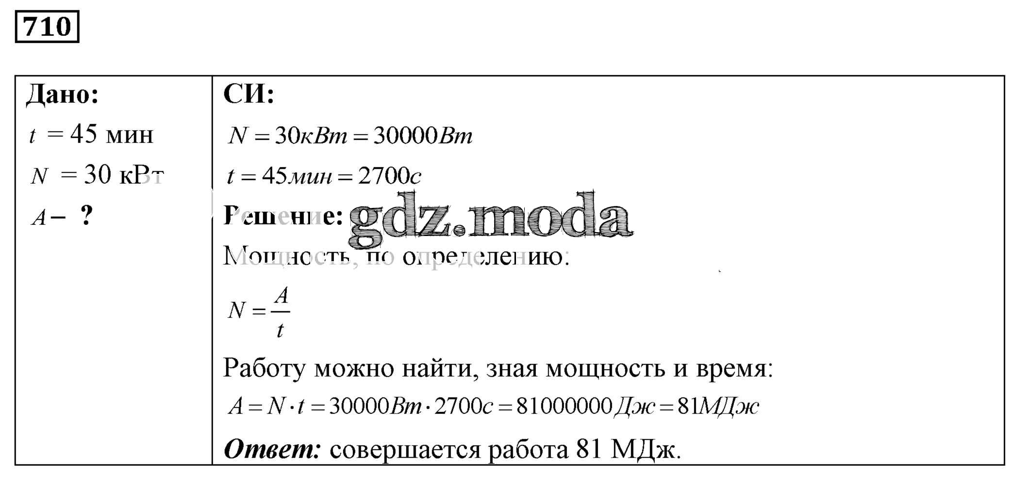 ОТВЕТ на задание № 710 Сборник задач по Физике 7-9 класс Лукашик