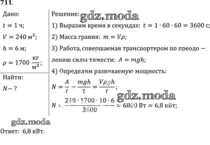 ОТВЕТ на задание № 711 Сборник задач по Физике 7-9 класс Лукашик