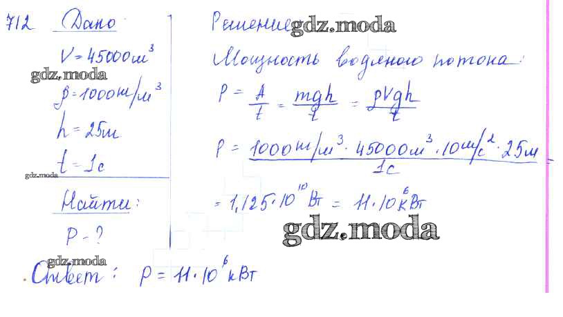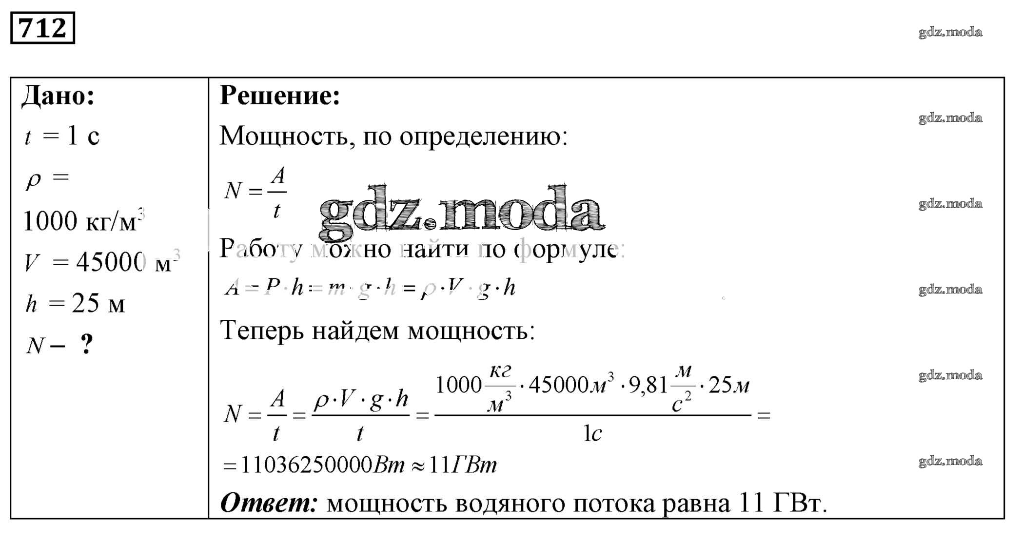 ОТВЕТ на задание № 712 Сборник задач по Физике 7-9 класс Лукашик