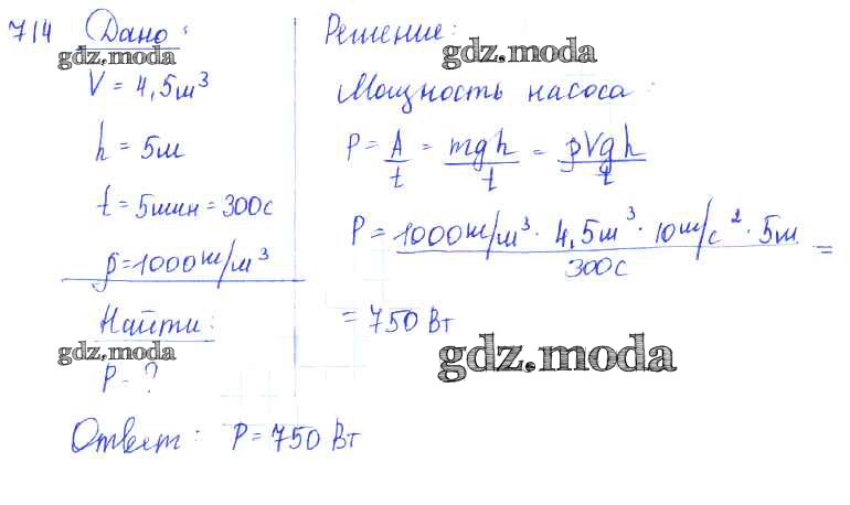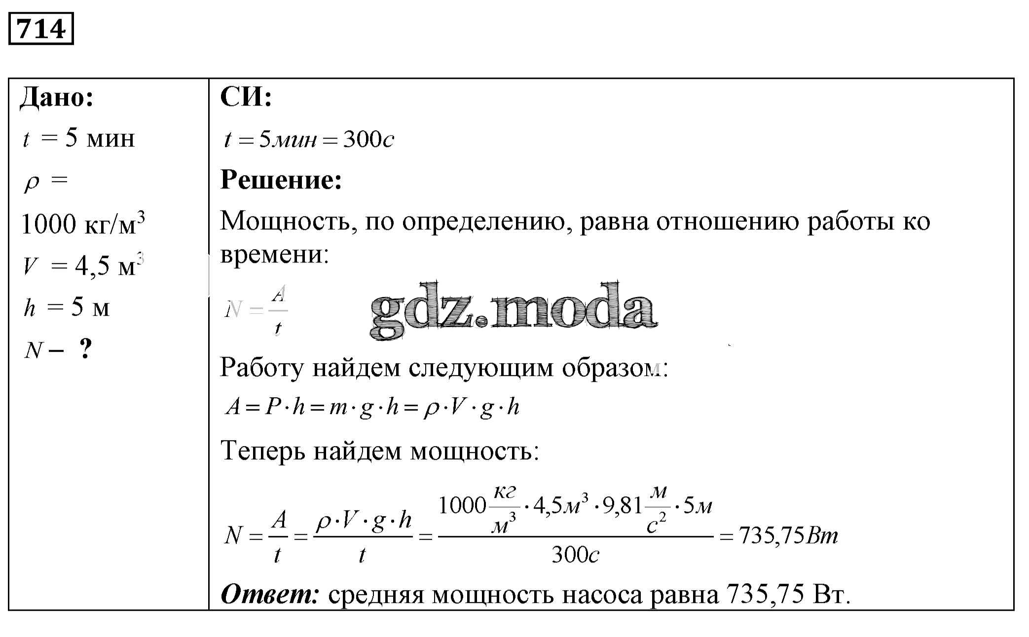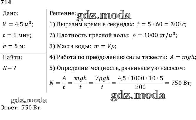 ОТВЕТ на задание № 714 Сборник задач по Физике 7-9 класс Лукашик