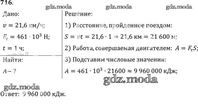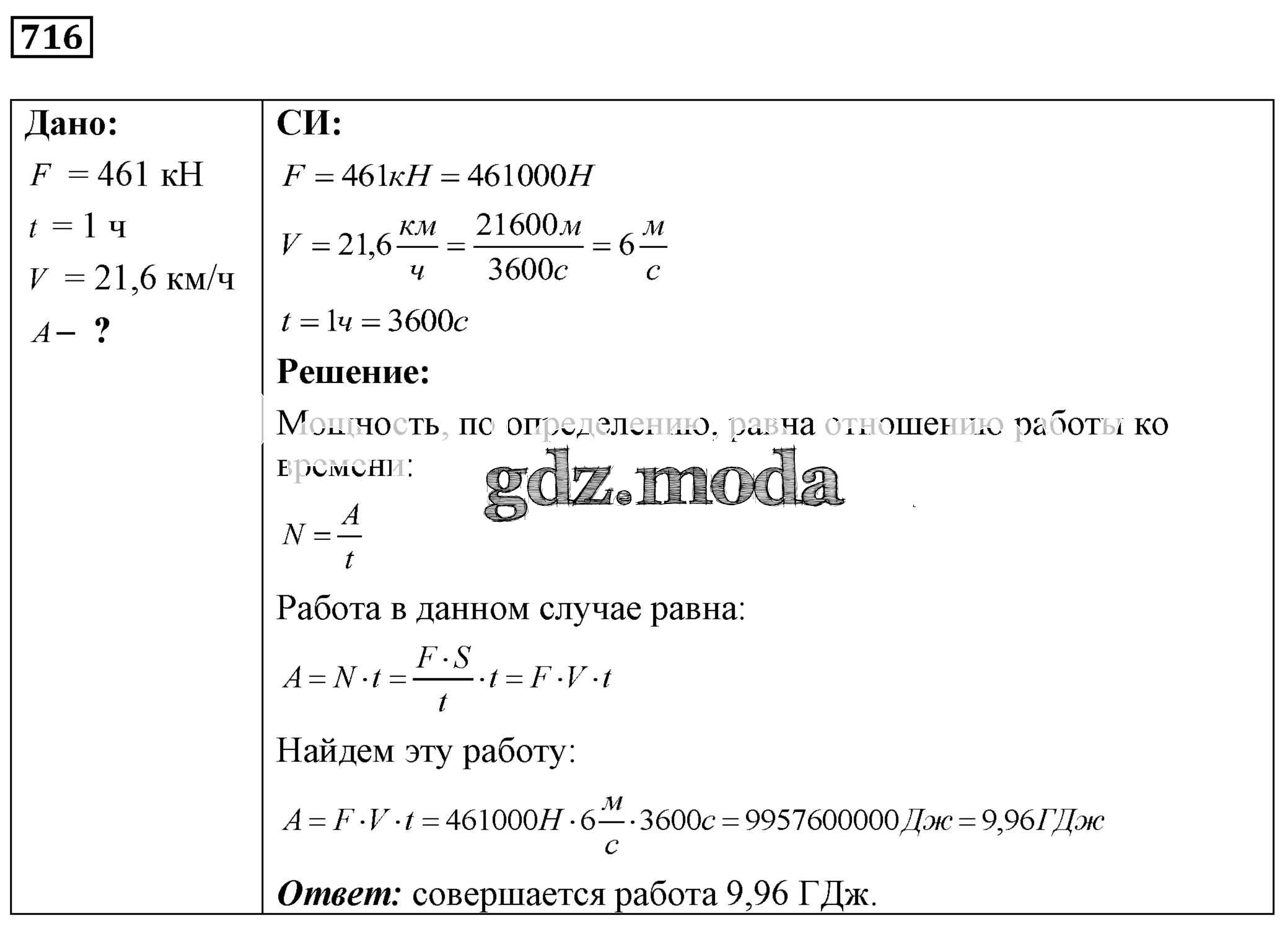 ОТВЕТ на задание № 716 Сборник задач по Физике 7-9 класс Лукашик