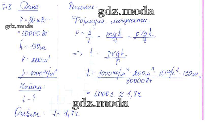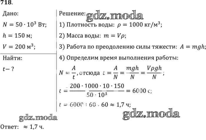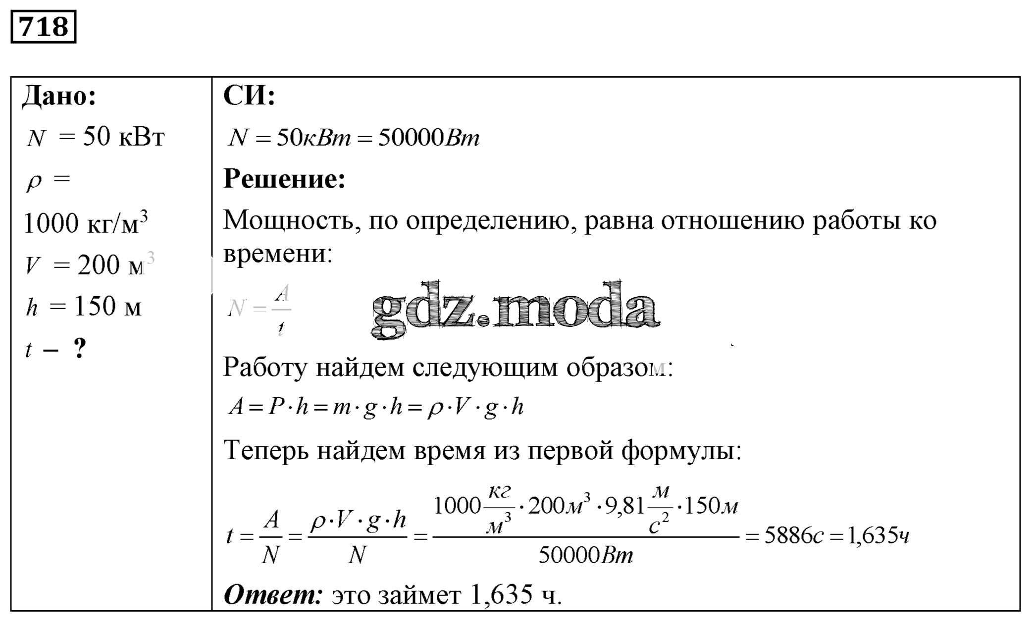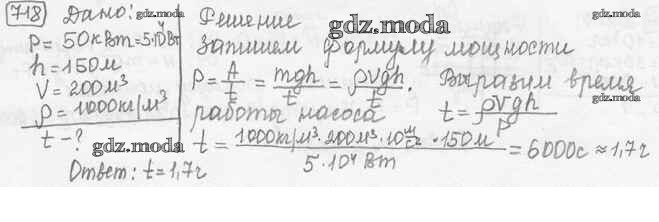 ОТВЕТ на задание № 718 Сборник задач по Физике 7-9 класс Лукашик
