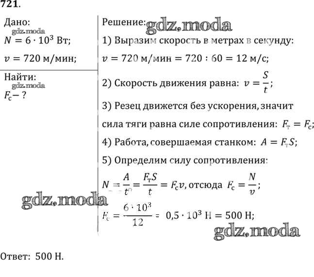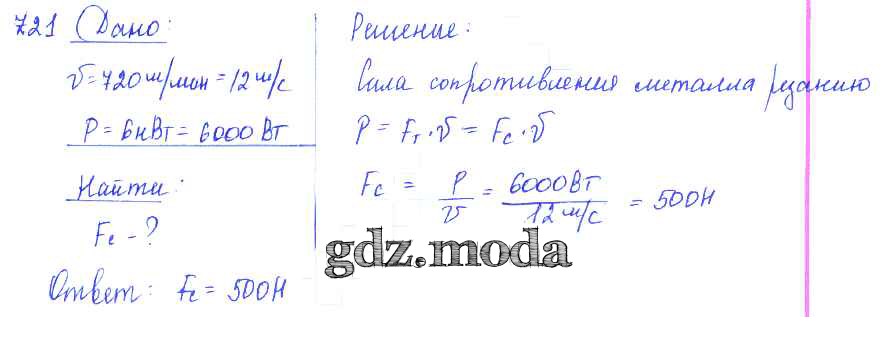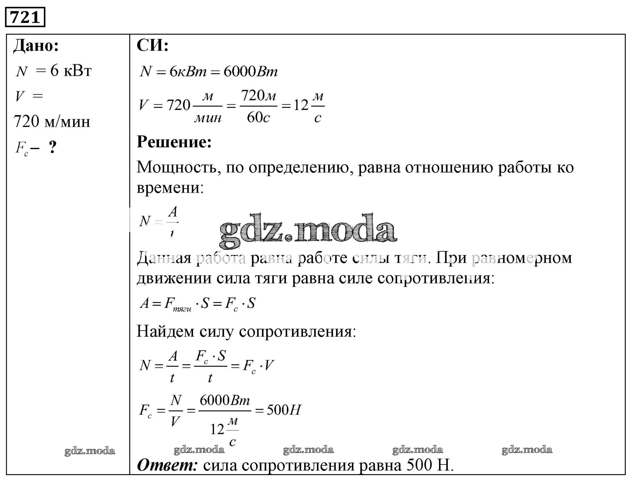 ОТВЕТ на задание № 721 Сборник задач по Физике 7-9 класс Лукашик