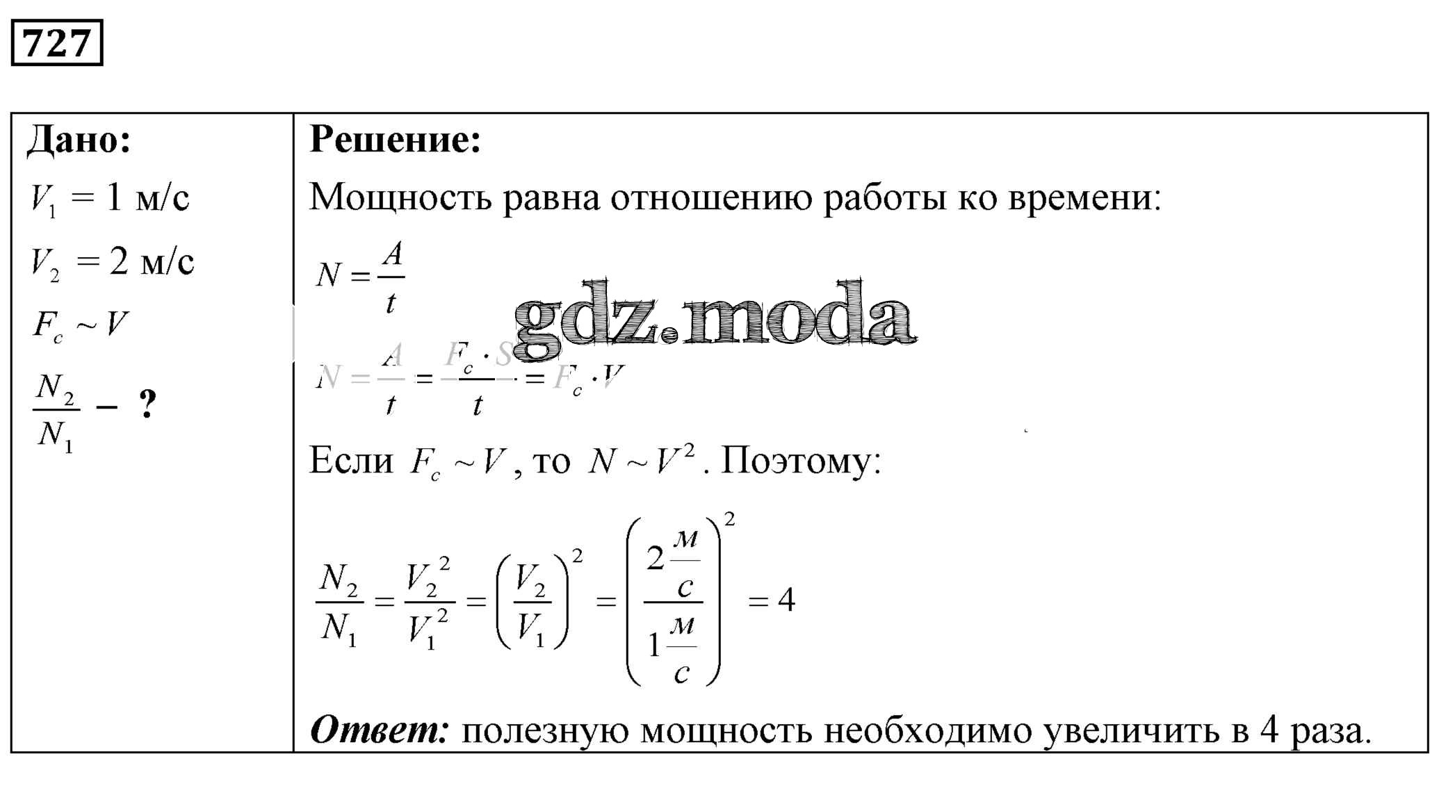 ОТВЕТ на задание № 727 Сборник задач по Физике 7-9 класс Лукашик