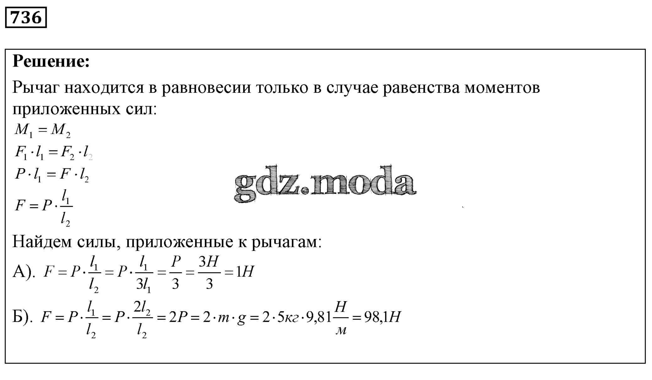 ОТВЕТ на задание № 736 Сборник задач по Физике 7-9 класс Лукашик