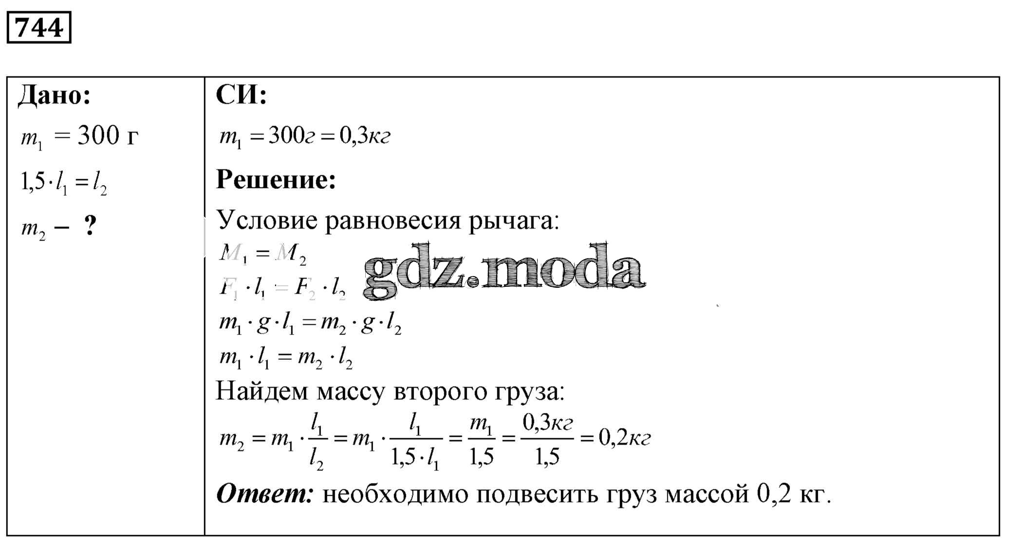 ОТВЕТ на задание № 744 Сборник задач по Физике 7-9 класс Лукашик