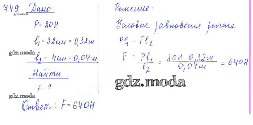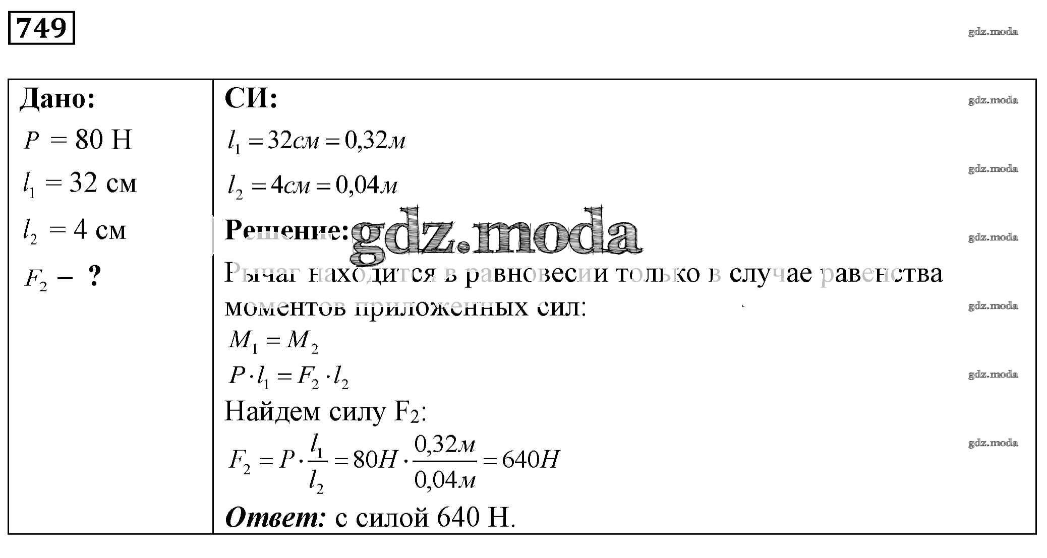 ОТВЕТ на задание № 749 Сборник задач по Физике 7-9 класс Лукашик