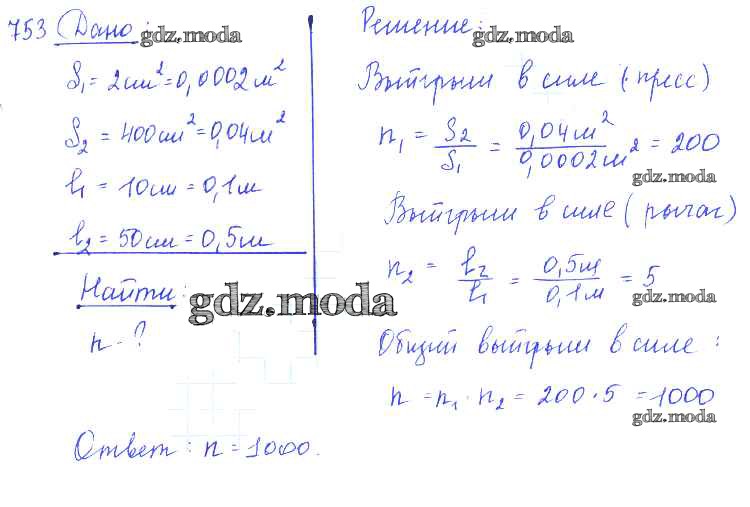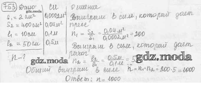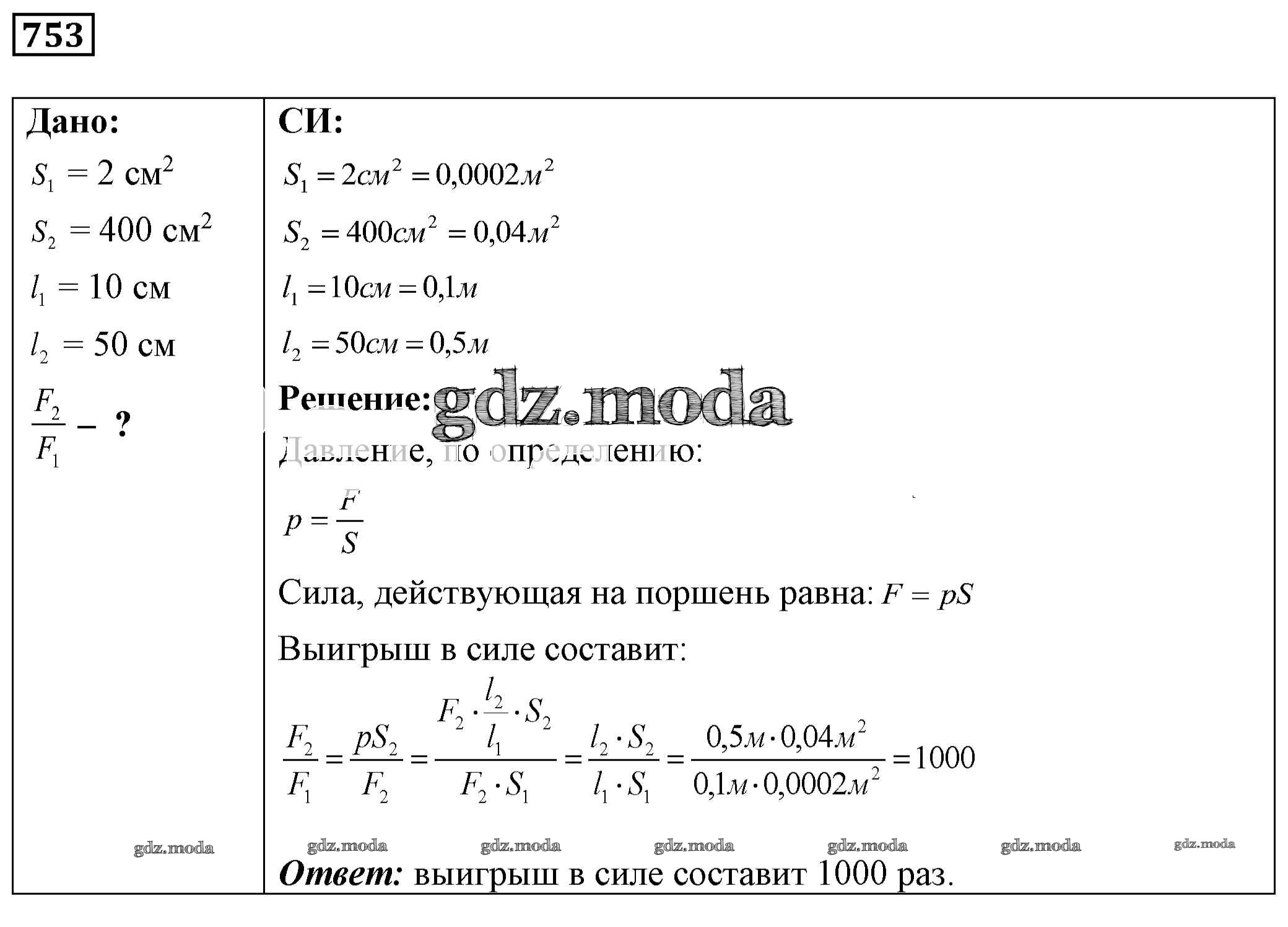 ОТВЕТ на задание № 753 Сборник задач по Физике 7-9 класс Лукашик