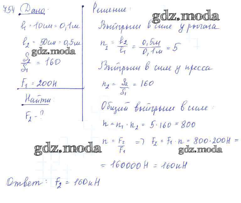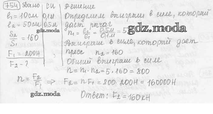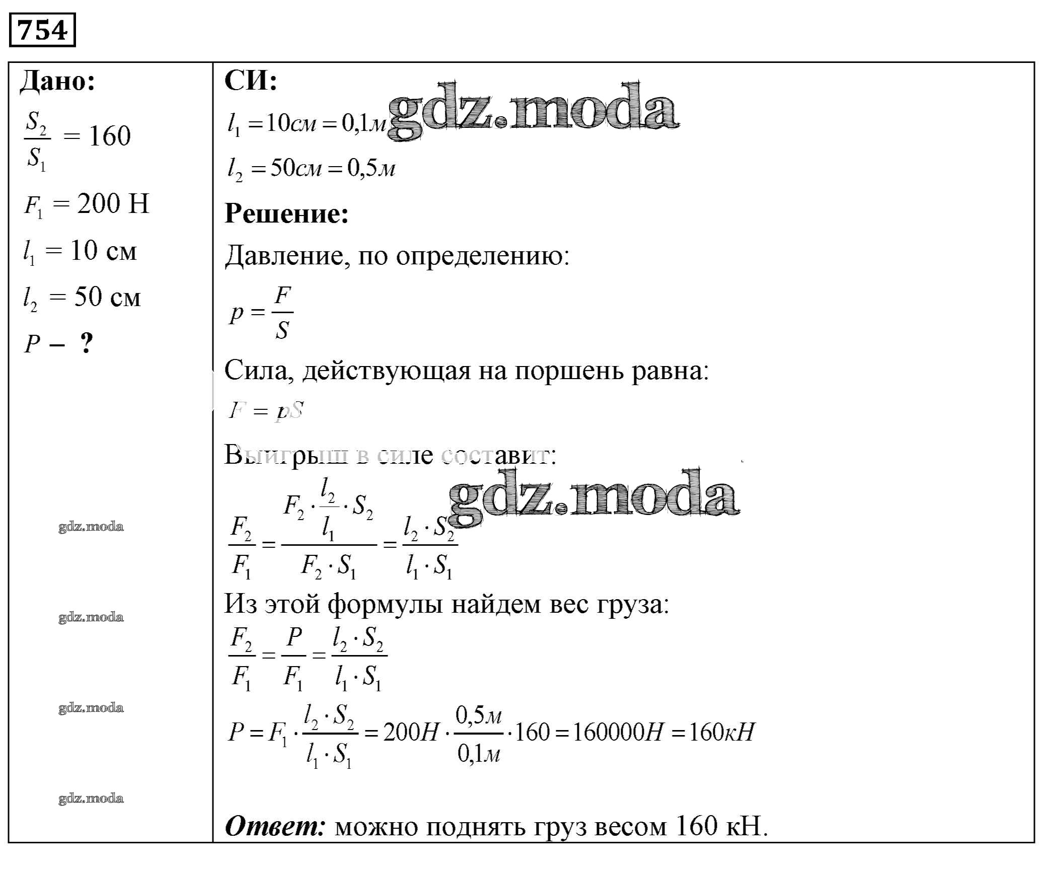 ОТВЕТ на задание № 754 Сборник задач по Физике 7-9 класс Лукашик