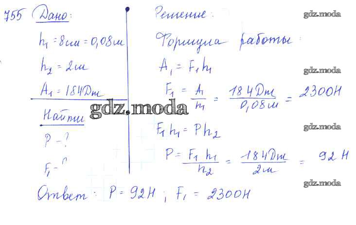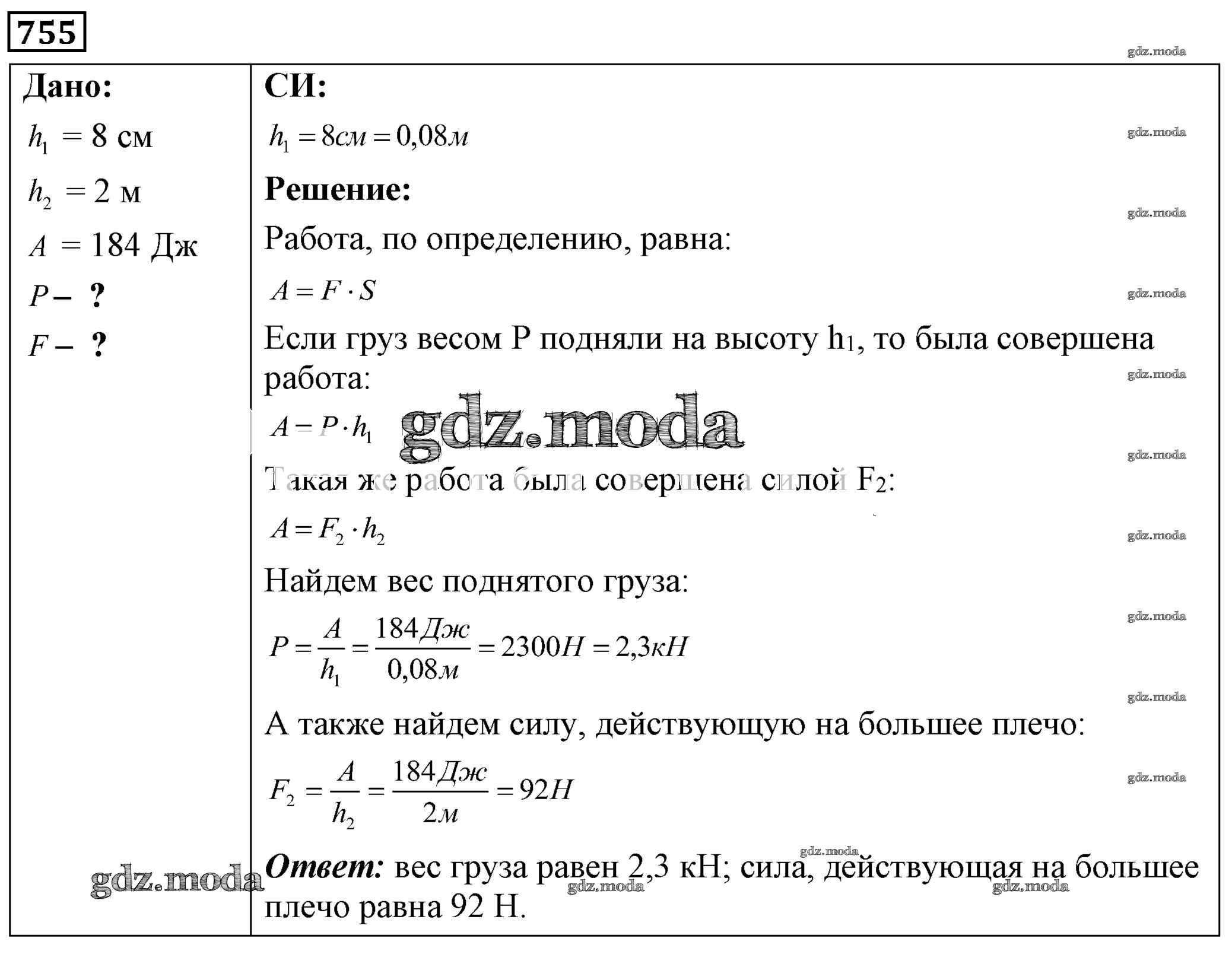 ОТВЕТ на задание № 755 Сборник задач по Физике 7-9 класс Лукашик