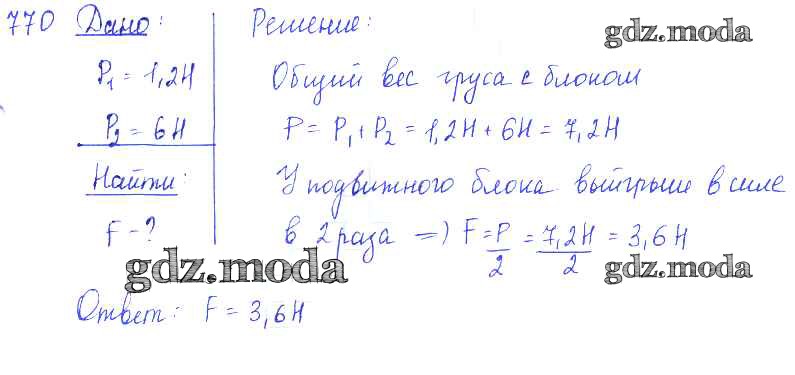 ОТВЕТ на задание № 770 Сборник задач по Физике 7-9 класс Лукашик