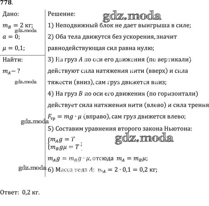 ОТВЕТ на задание № 778 Сборник задач по Физике 7-9 класс Лукашик