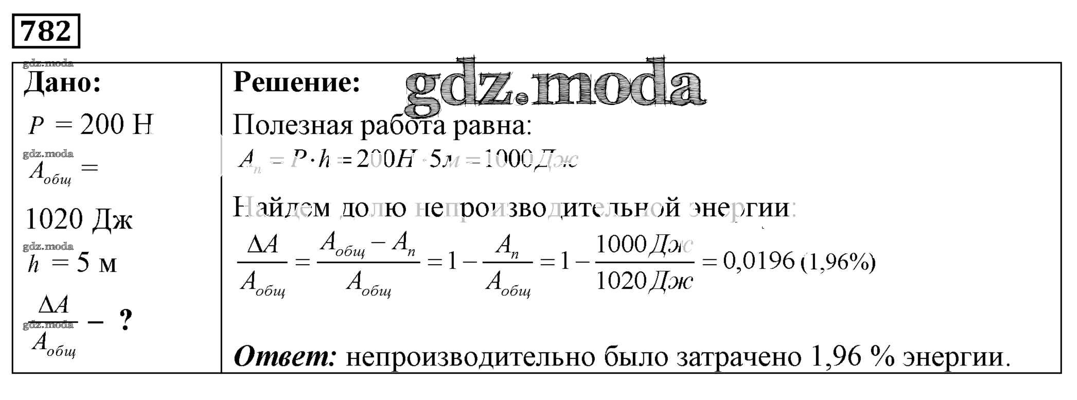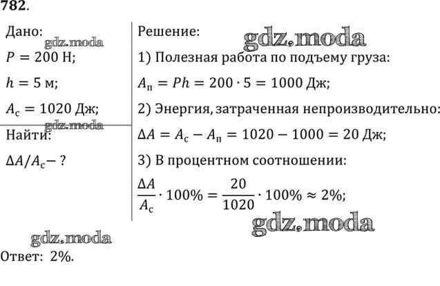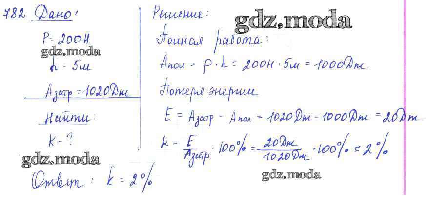 ОТВЕТ на задание № 782 Сборник задач по Физике 7-9 класс Лукашик