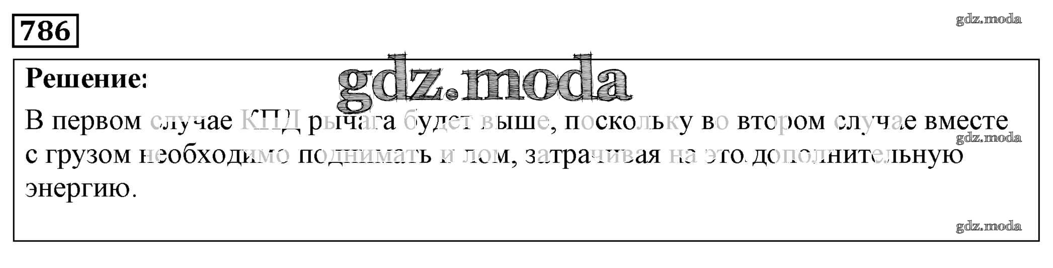 ОТВЕТ на задание № 786 Сборник задач по Физике 7-9 класс Лукашик