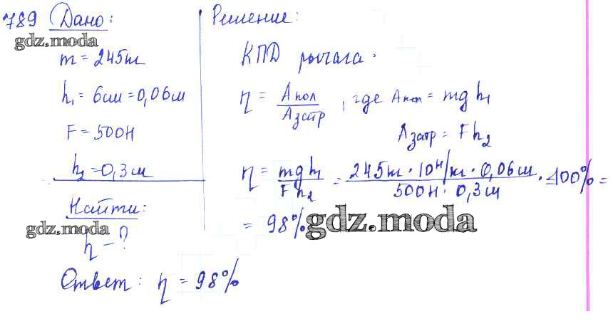 ОТВЕТ на задание № 789 Сборник задач по Физике 7-9 класс Лукашик