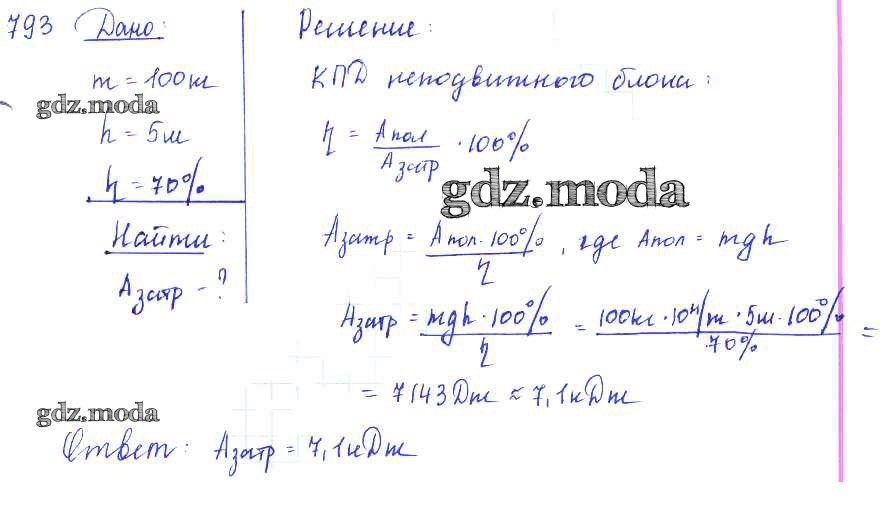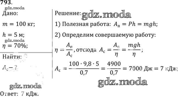 ОТВЕТ на задание № 793 Сборник задач по Физике 7-9 класс Лукашик