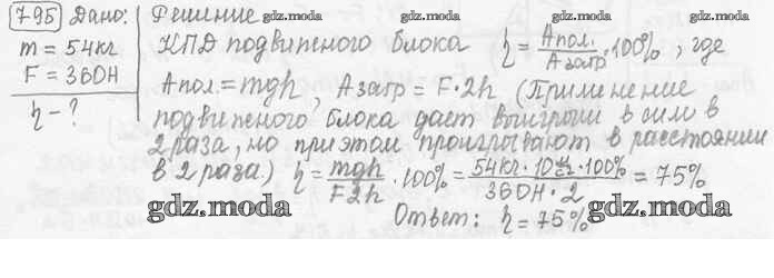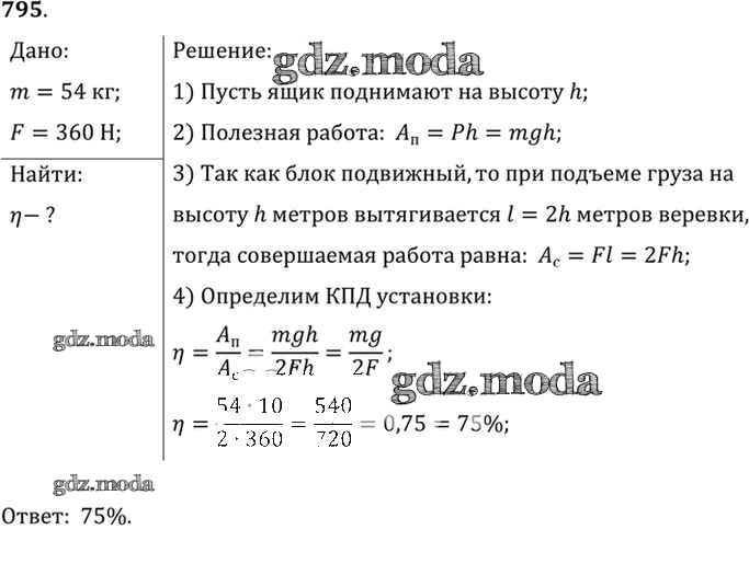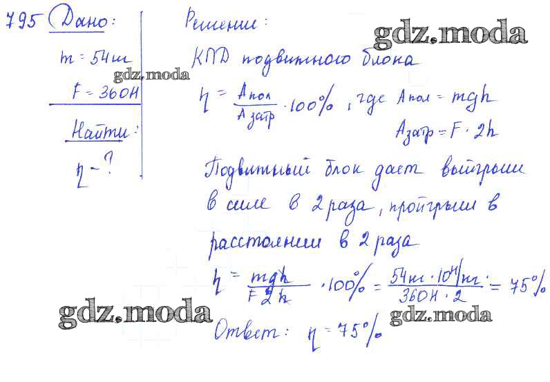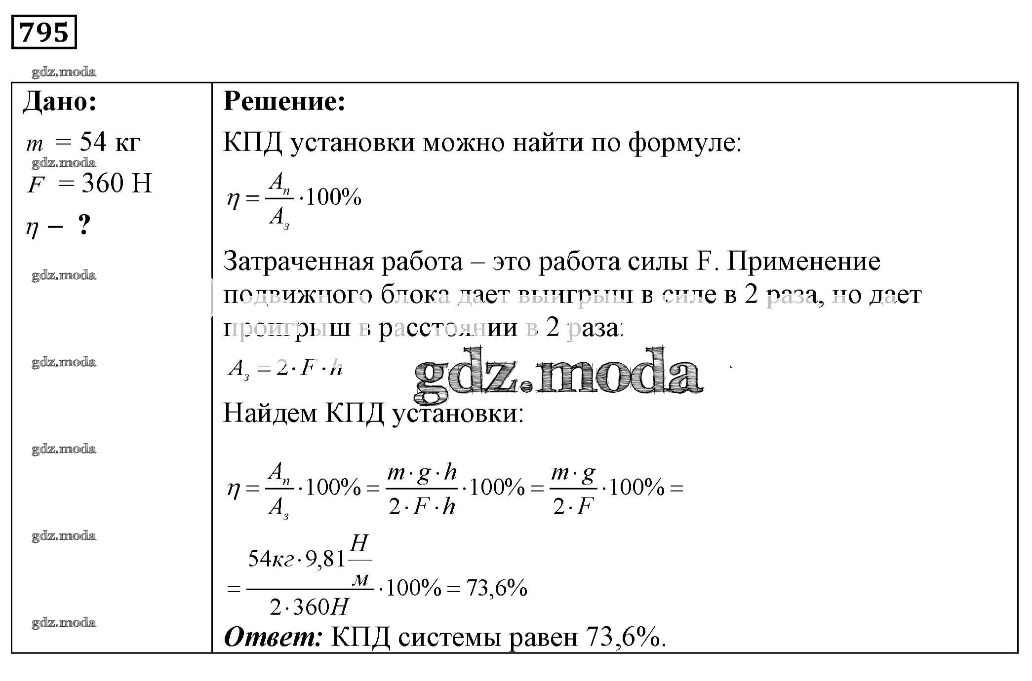 ОТВЕТ на задание № 795 Сборник задач по Физике 7-9 класс Лукашик