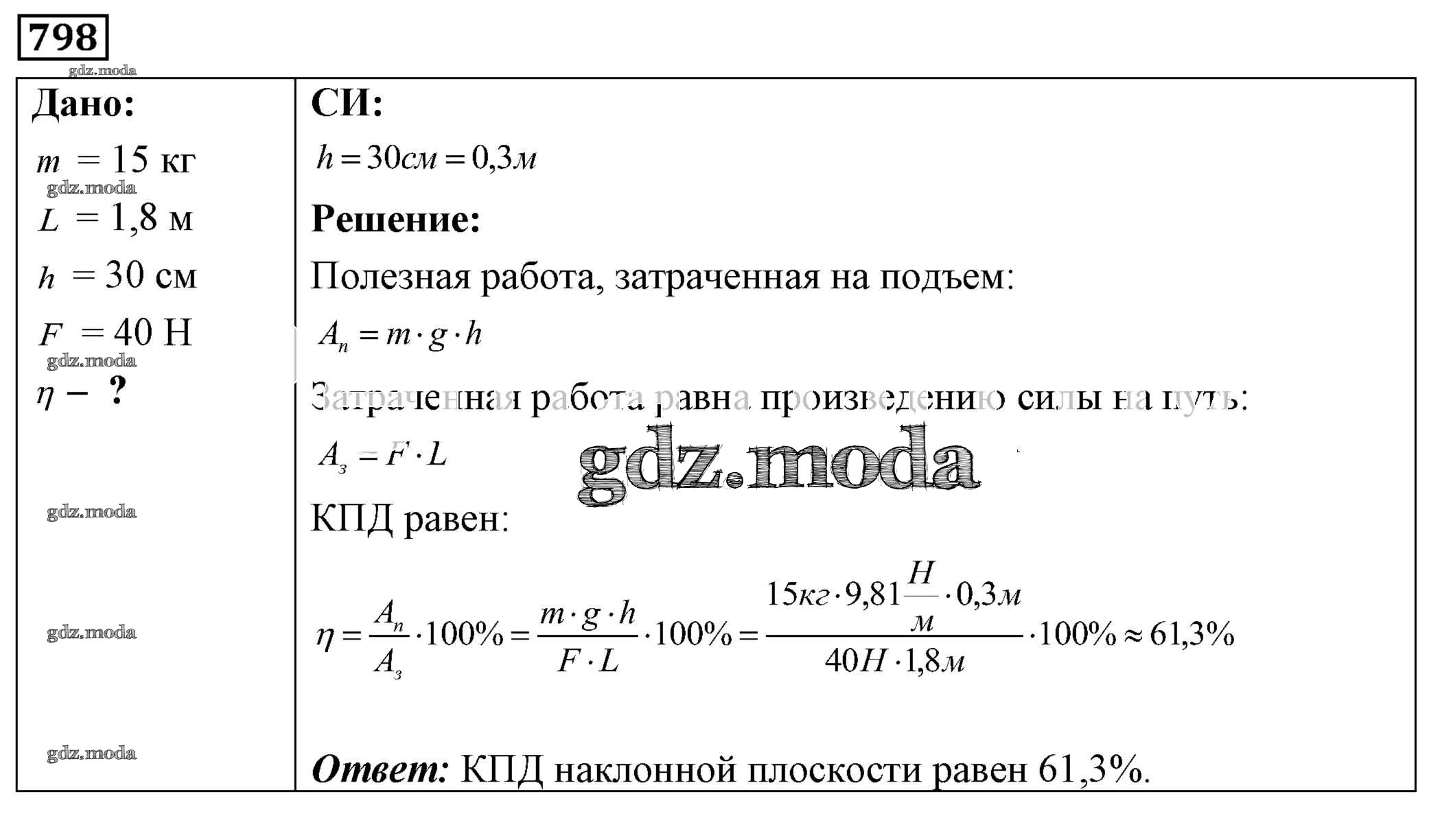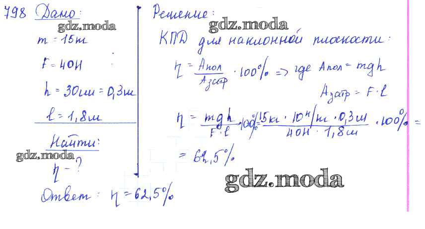 ОТВЕТ на задание № 798 Сборник задач по Физике 7-9 класс Лукашик