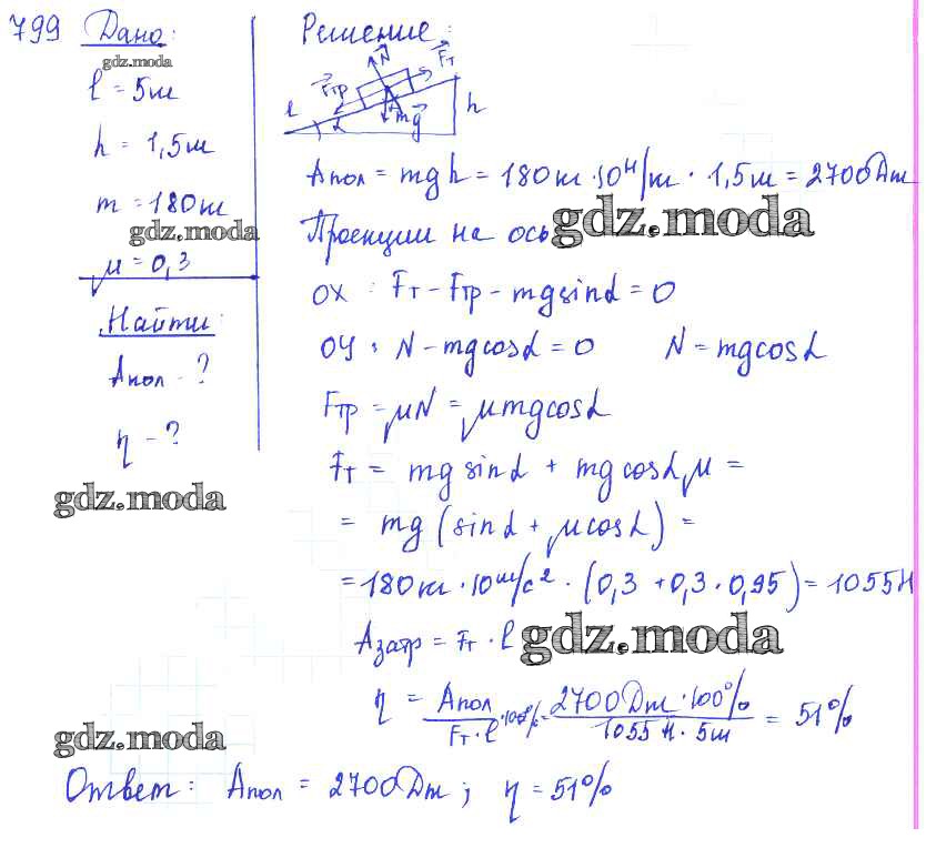 ОТВЕТ на задание № 799 Сборник задач по Физике 7-9 класс Лукашик