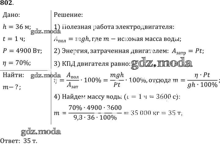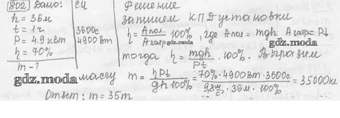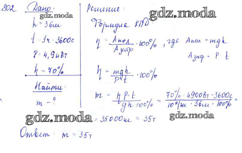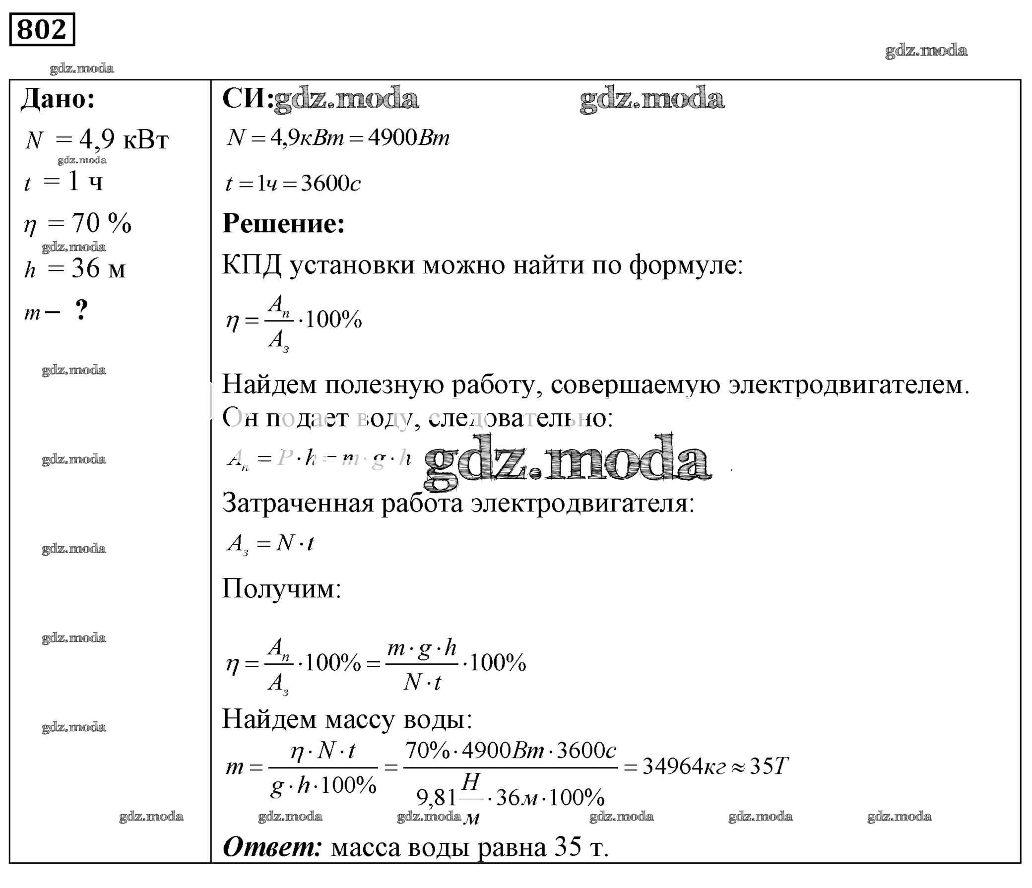 ОТВЕТ на задание № 802 Сборник задач по Физике 7-9 класс Лукашик