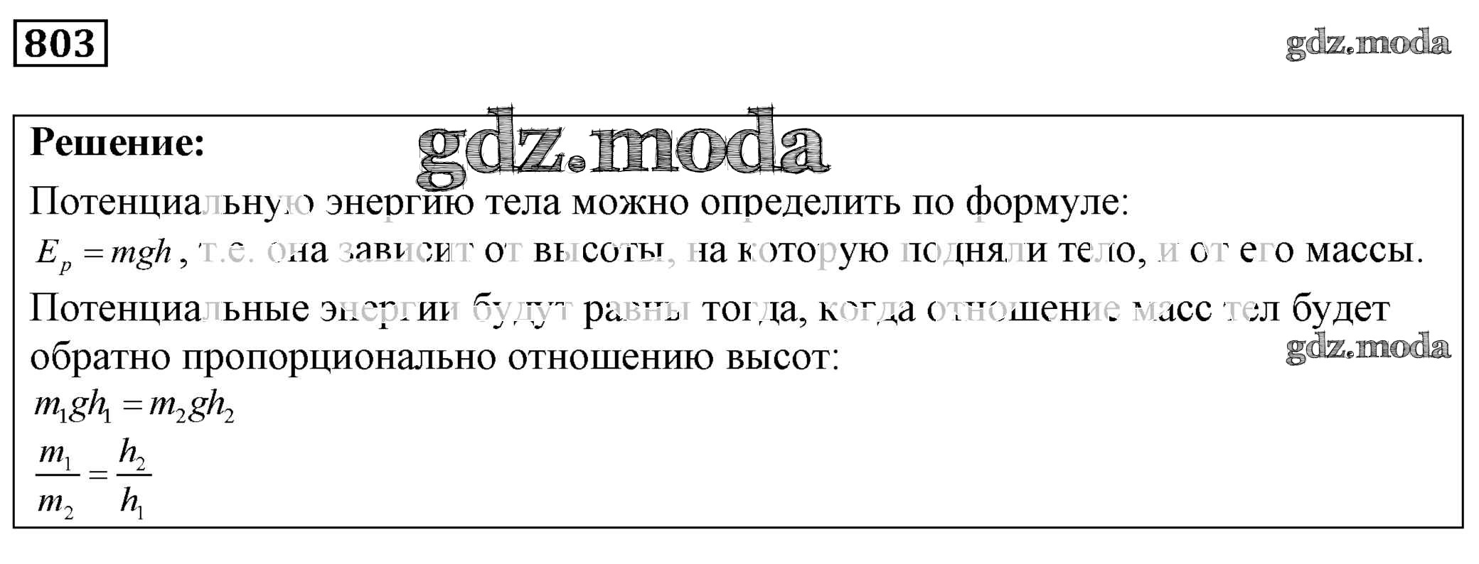 ОТВЕТ на задание № 803 Сборник задач по Физике 7-9 класс Лукашик