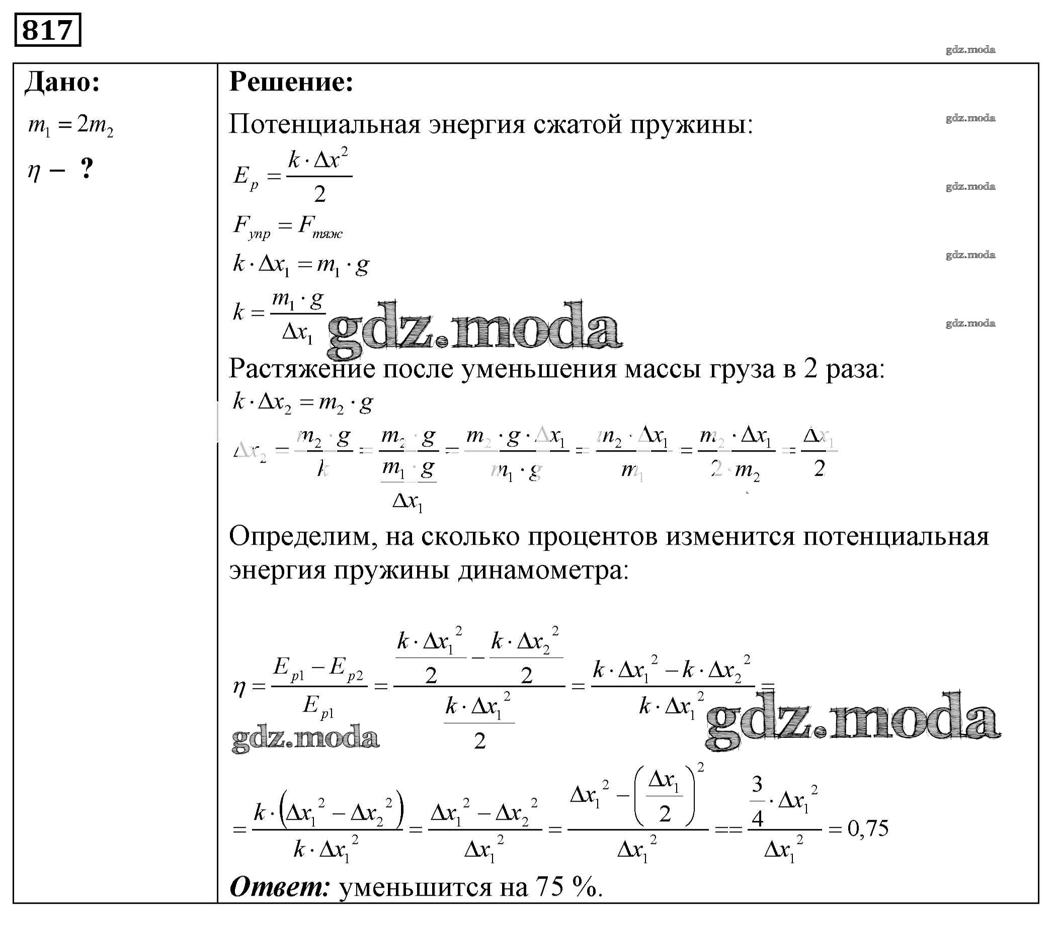 ОТВЕТ на задание № 817 Сборник задач по Физике 7-9 класс Лукашик
